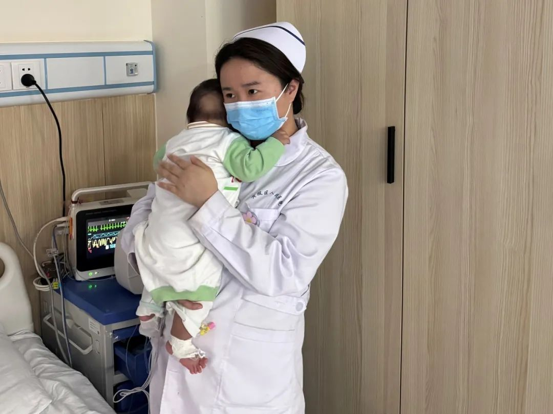 4月11日凌晨五点半,儿科二病区病房的灯光依然明亮。正在值夜班的护士长发现23床喘息性支气管肺炎的患儿因痰液堵塞呼吸不畅,哭闹不止。他的母亲因个人原因无法陪护,年迈的爷爷独自照顾已疲惫不堪。护士长立即通知值班医生,配合医生紧急吸痰、雾化治疗,并全程将患儿抱在怀中安抚,像“临时妈妈”一样给予温暖与安全感。