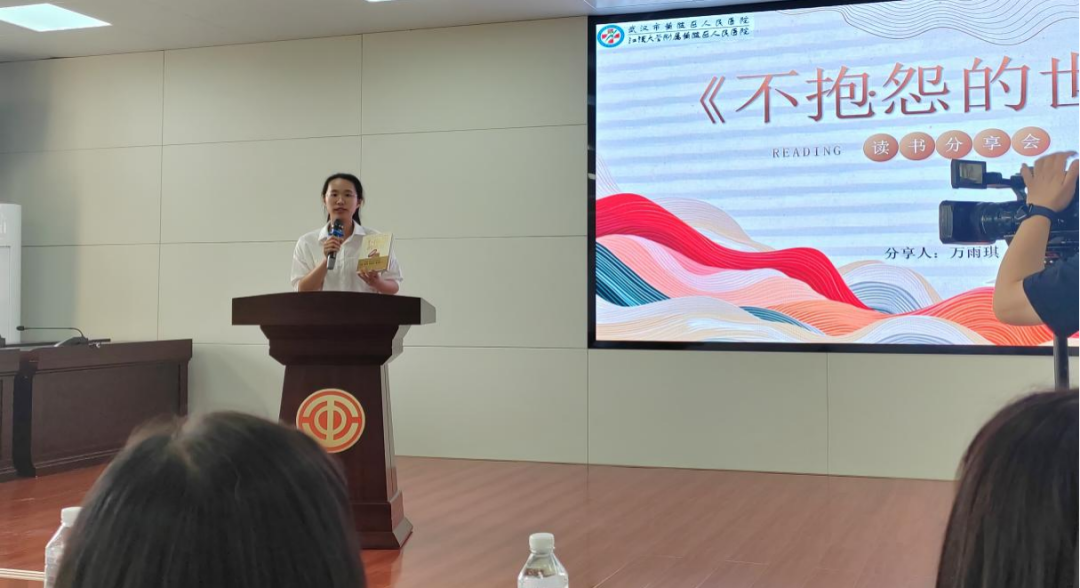 在优秀书籍推荐及分享环节,来自我院心血管内科的职工万雨琪给大家分享了《不抱怨的世界》一书。 她从分享书籍的背景、内容简介、作品赏析和读书心得等方面,结合自己的工作感悟,用朴实细腻的语言畅谈所读书籍的精神内核,以自己独到的见解在分享中交流经验、碰撞思想。从而也展现了人医人意气风发、积极进取的精神风貌,赢得了在场观众的阵阵掌声和高度评价。活动现场也是书香浓郁,气氛活跃。