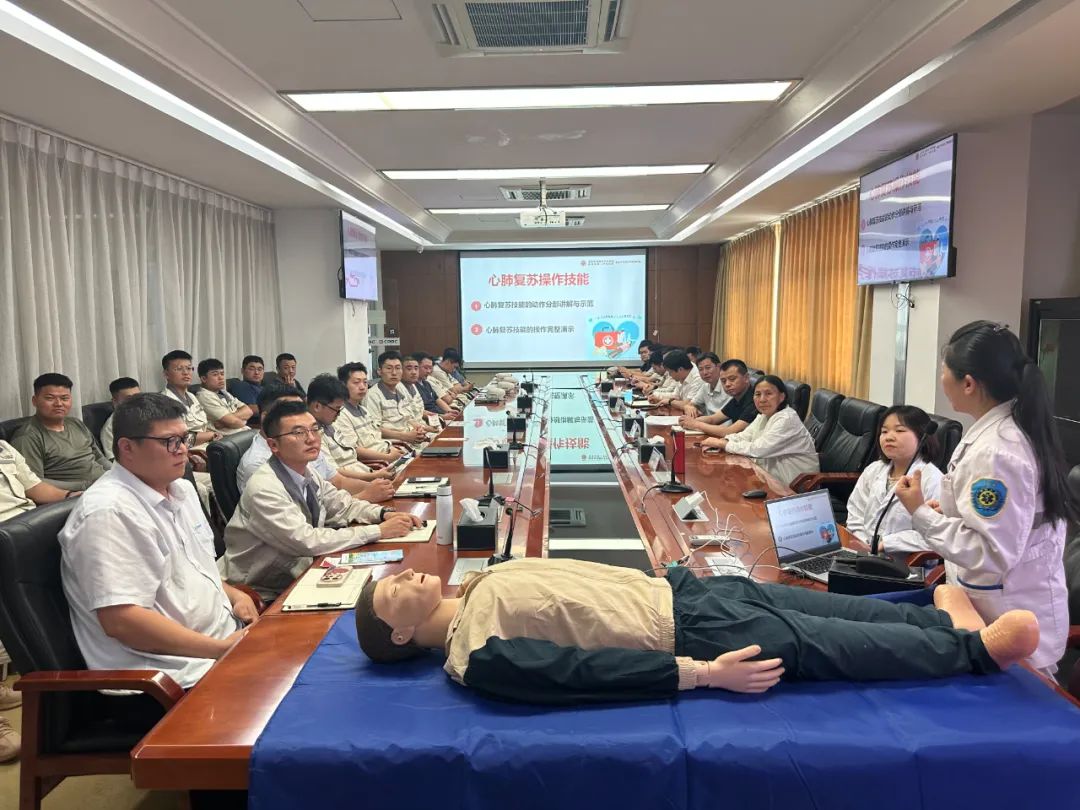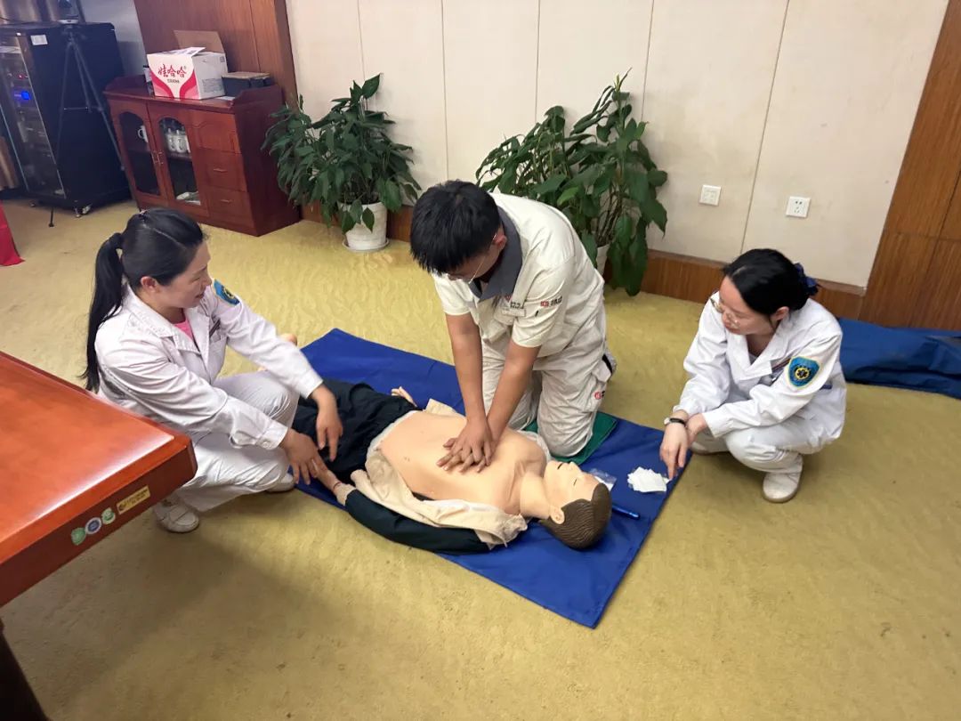 在应急急救技能培训环节,讲师们将心肺复苏技能通过“理论+示范+实操互动”方式,理论讲解配合动作分解示范,对胸外按压的部位、频率、深度,及人工呼吸的规范动作,都进行了细致示范。在实操演练时,参训人员踊跃参与,在模拟人上进行实操,培训师们全程在旁耐心指导,及时纠正动作,确保大家都能掌握操作要领。每位积极参与互动者均获赠中医特色驱蚊提神功效的香囊作为奖励。