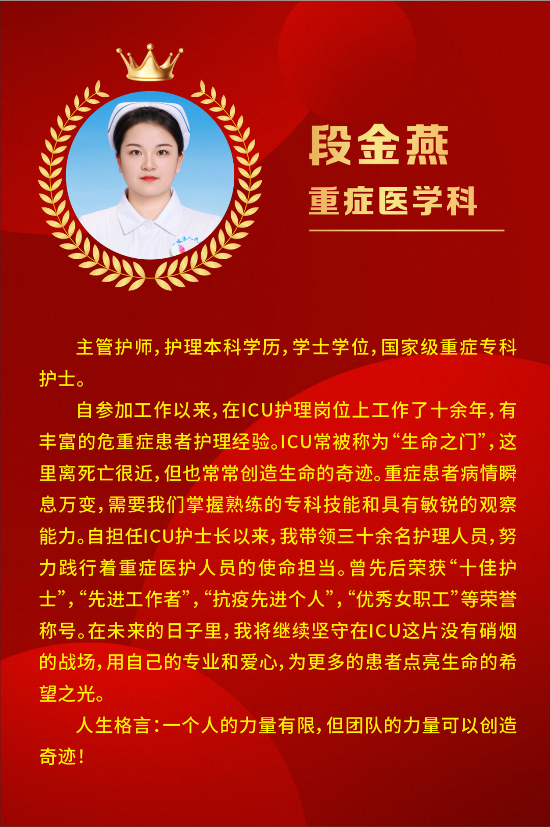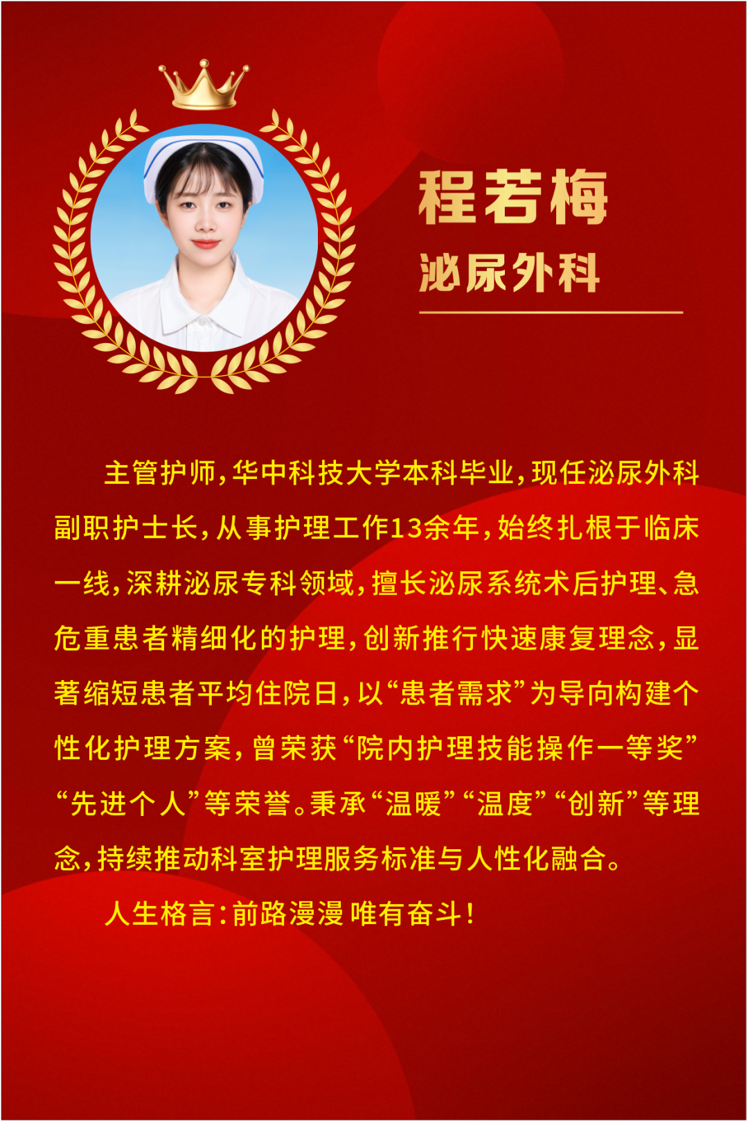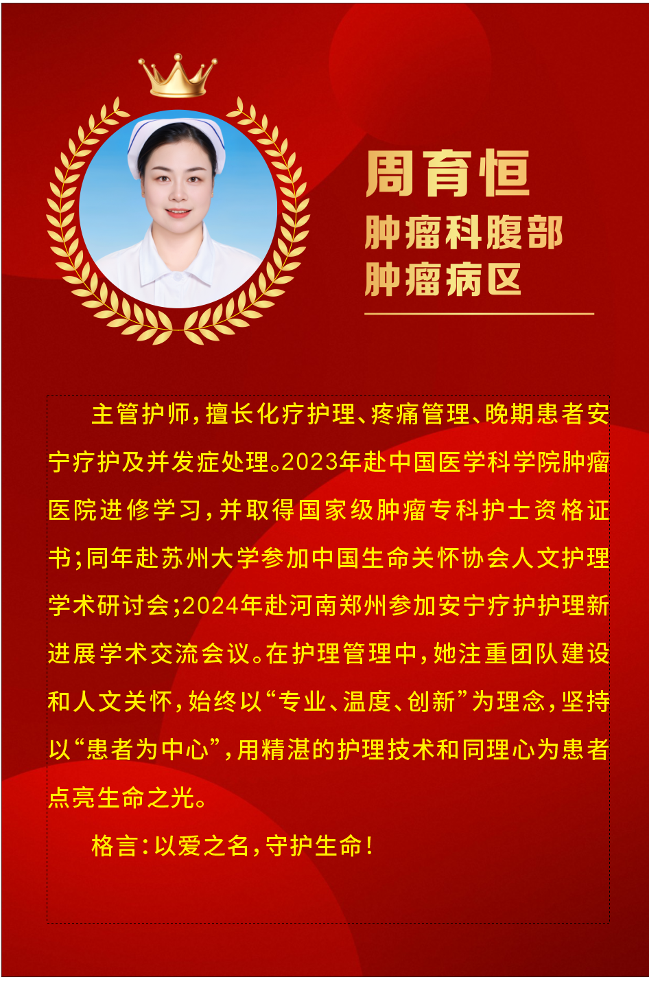 第114个国际护士节之际,为了表彰在护理工作中表现突出、贡献卓越的护理人员,进一步弘扬南丁格尔精神,充分发挥先进典型的模范作用,激励广大护理工作者发扬精益求精、无私奉献的光荣传统,营造有利于护理队伍建设和护理工作发展的良好氛围,提升护理服务质量,医院决定对一批优秀护士、优秀护理管理者进行表彰,人员名单如下。