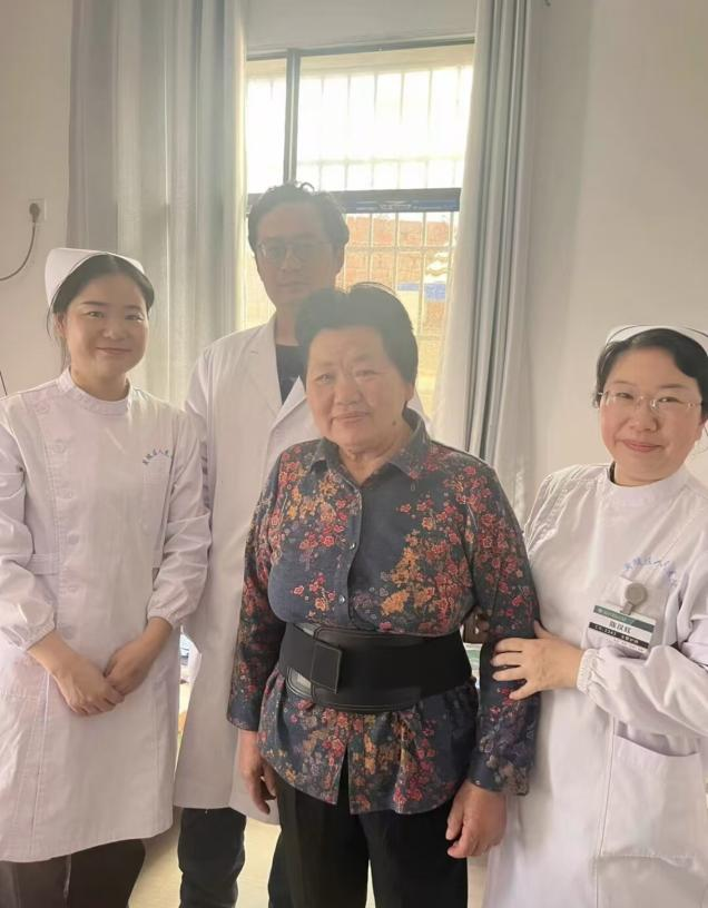 医生细心地查看了彭奶奶的手术伤口愈合情况。看到伤口愈合良好,没有出现红肿、渗液等异常现象。为彭奶奶和家人详细讲解了伤口护理的注意事项及恢复过程中的常见问题,用通俗易懂的语言让她了解到只要按照康复计划进行锻炼,保持良好的心态,身体一定会逐渐康复。彭奶奶的心情逐渐放松,对康复也充满了信心。