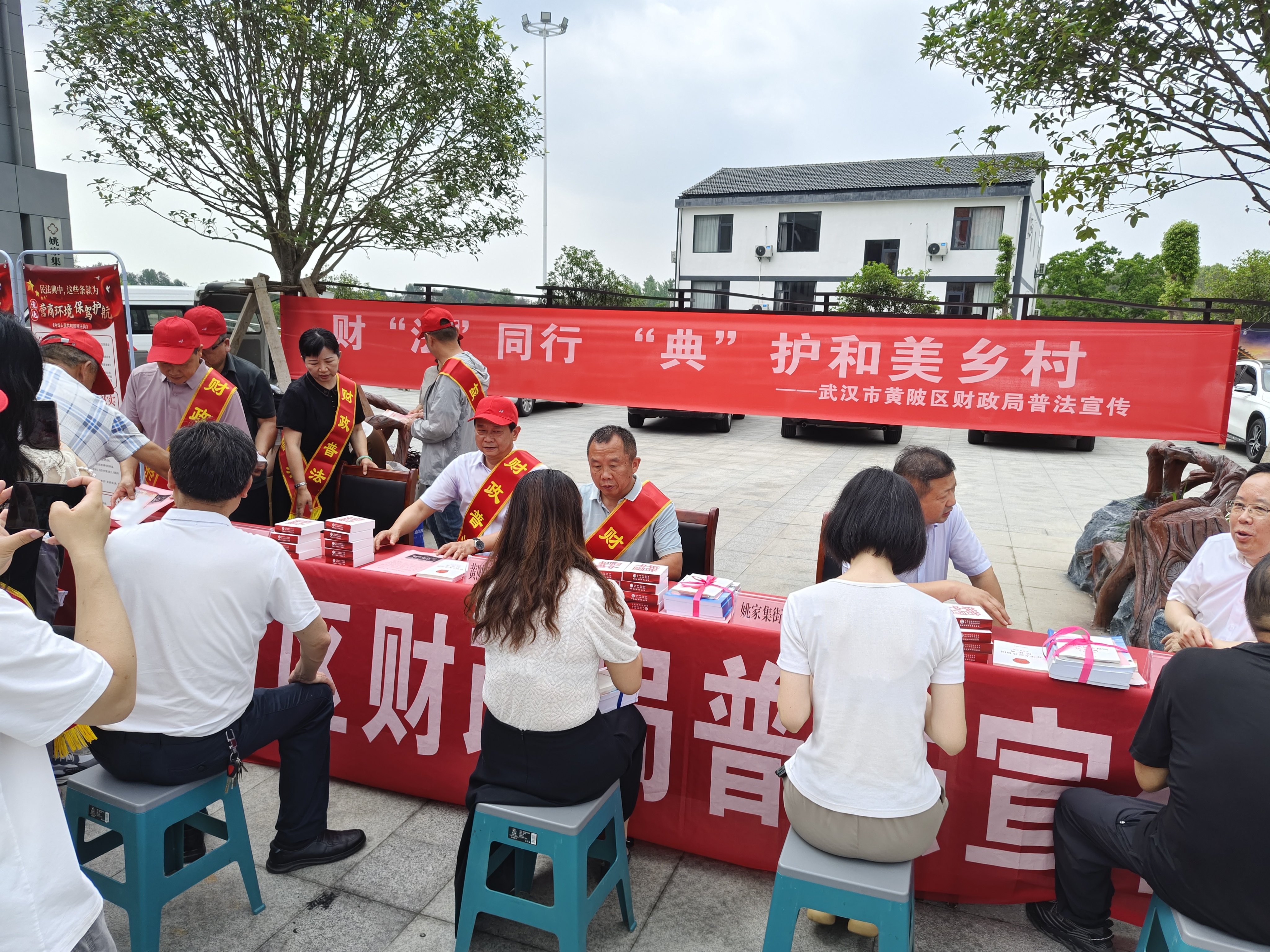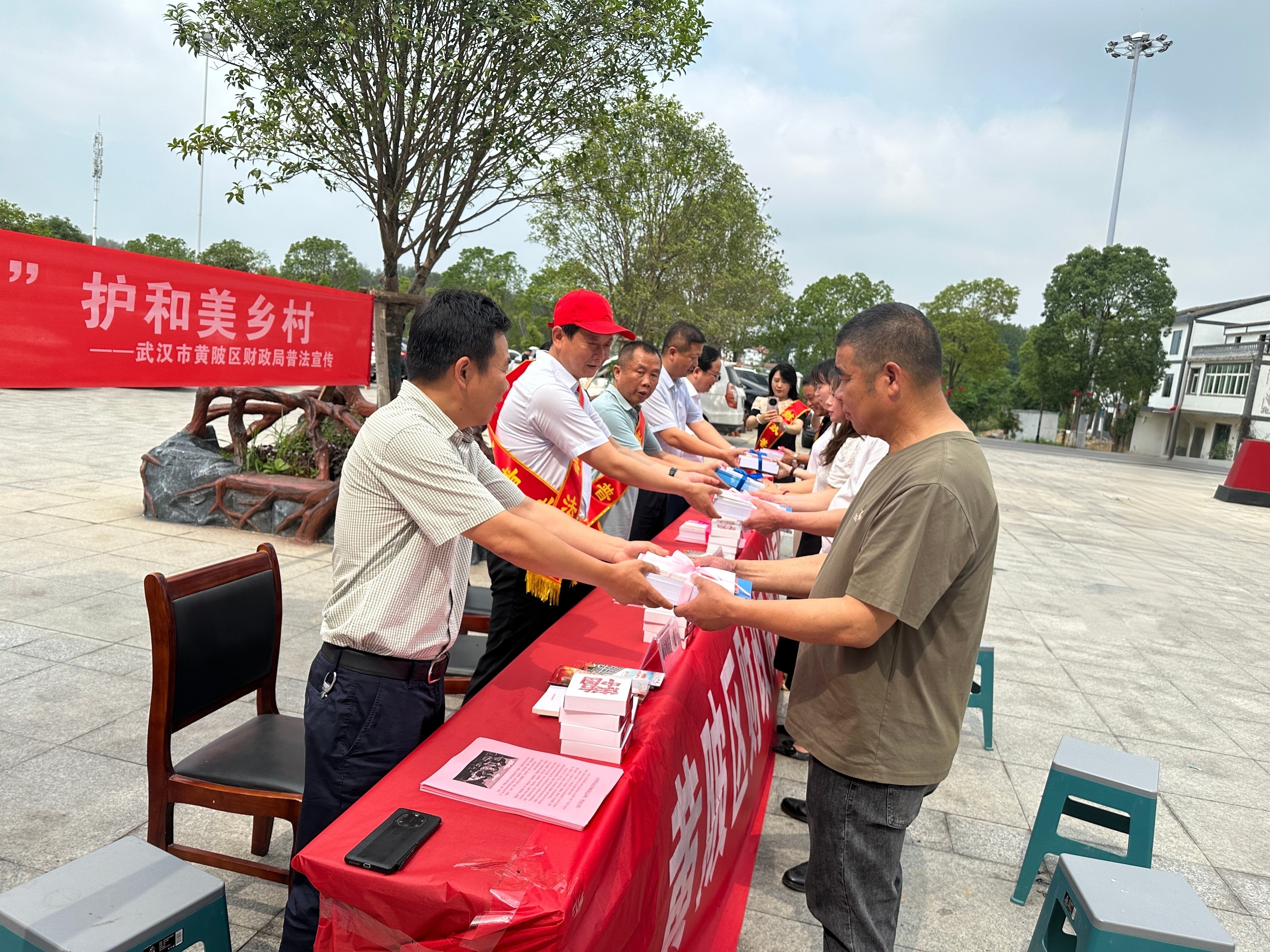 双线并进,“典”护和美乡村。5月20日,区局以“财‘法’同行‘典’护和美乡村”为主题,积极推动财政普法“进企业”“进乡村”。区局三级调研员彭勇亲自带队,组织区局执法科室单位,前往和美乡村试点试验所在地姚集街杜堂村,开展现场普法活动。区局向当地企业代表武汉木兰花乡山水民宿有限公司、武汉万中集团赠送民法典书籍、惠企政策汇编等,为企业送法上门。在村委会广场,向村委干部赠送民法典书籍,向现场群众发放民法典手册、财政法律宣传册、普法宣传品等,并设置咨询台由法律顾问接受群众法律咨询,对村民关心的劳务纠纷、工伤赔偿等进行解答。共发放宣传资料480余份,宣传品260余份。