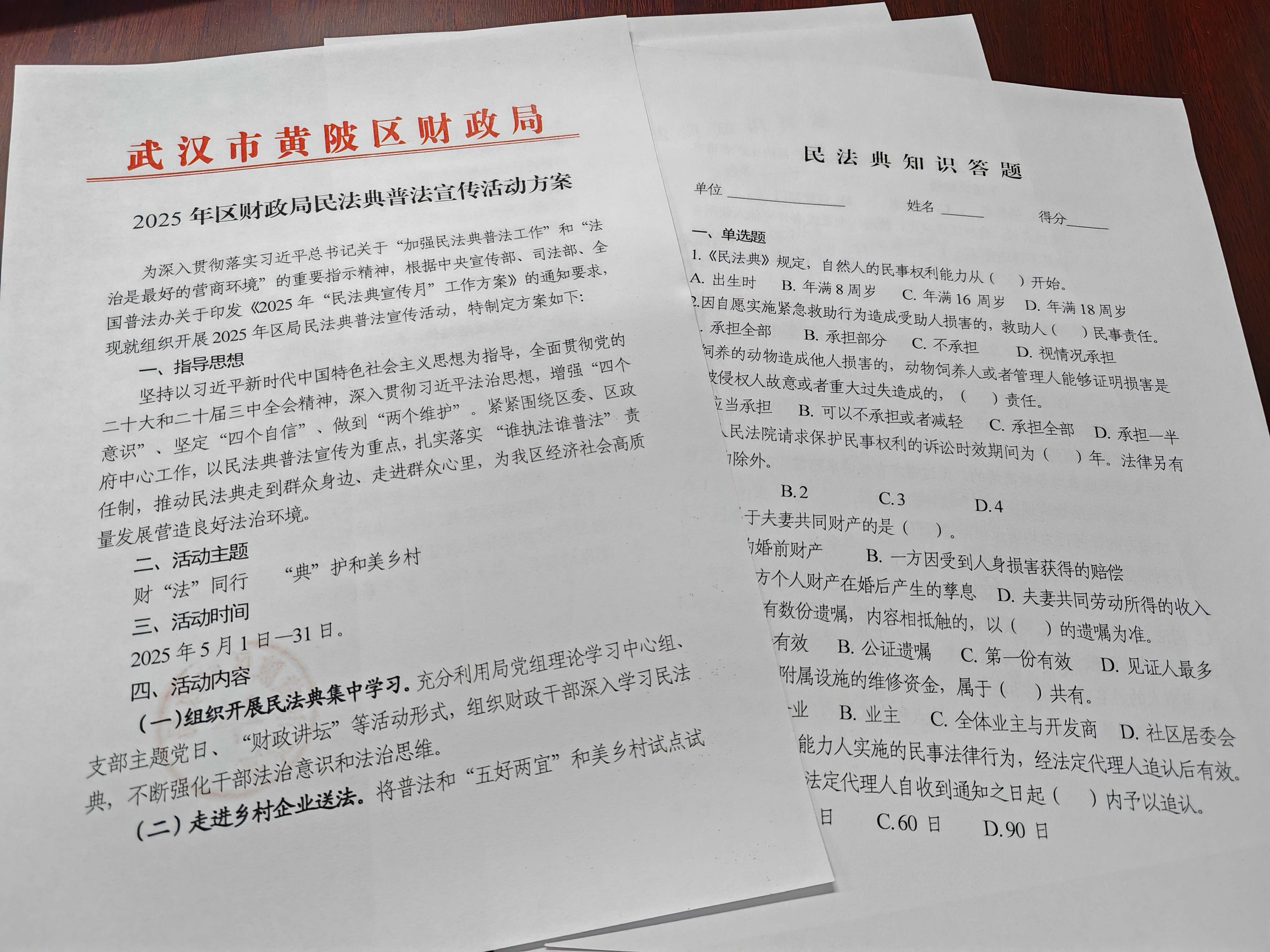 重点部署,“典”燃学法热情。区局党组高度重视,对宣传月活动进行统一部署。紧扣第五个民法典宣传月“民法典进企业”的普法重点,制发了《2025年区财政局民法典普法宣传活动方案》。紧紧围绕楼凤网 委、区政府中心工作,以民法典普法宣传为重点,充分利用局党组理论学习中心组、支部主题党日,组织财政干部深入学习民法典,强化干部法治意识。