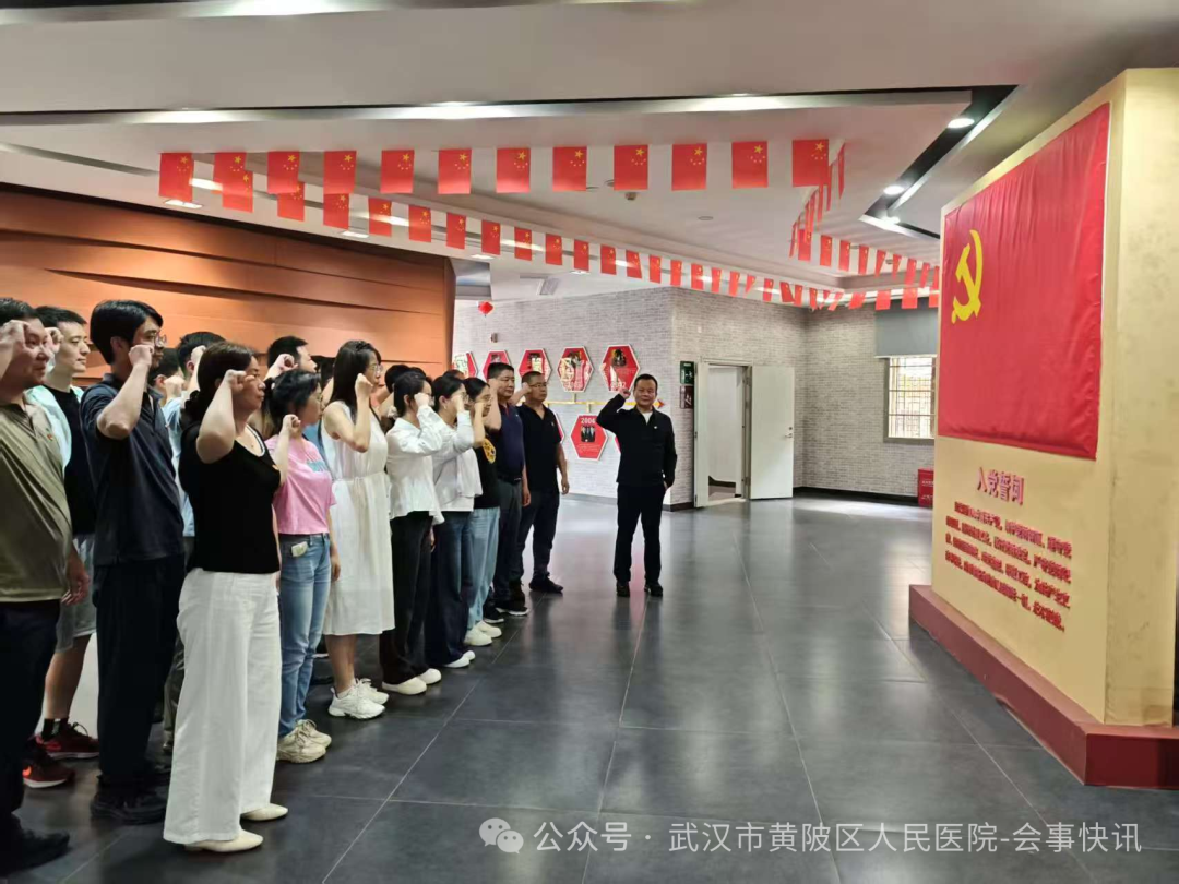 参观结束后,全体党员在武汉市协和医院检验输血总支书记张德太的带领下,面对鲜红的党旗,高举右拳,肃穆站立,在此重温了入党誓词。