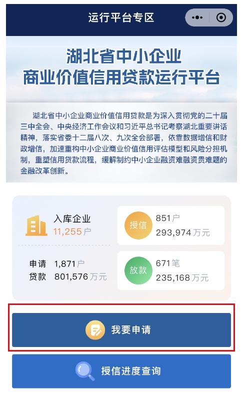 1.一键识别湖北省中小企业商业价值信用贷款运行平台;