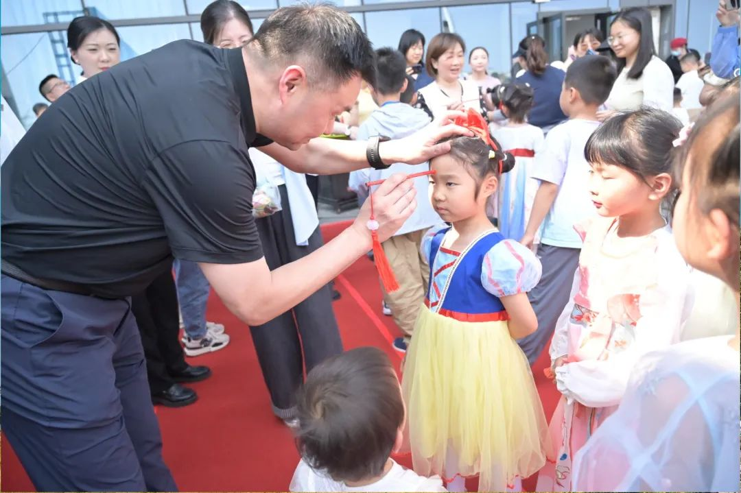 活动由工会主席刘英热情主持,副院长万玲暖心致辞,一句句节日问候与祝福,瞬间让现场氛围升温。随着院长杨国良敲响吉祥铜锣,激昂的锣声不仅送上端午祝福,更正式拉开了这场欢乐盛宴的序幕!医院领导还贴心地为小朋友们额头点上朱砂,一抹红,饱含着吉祥明智的美好寓意。