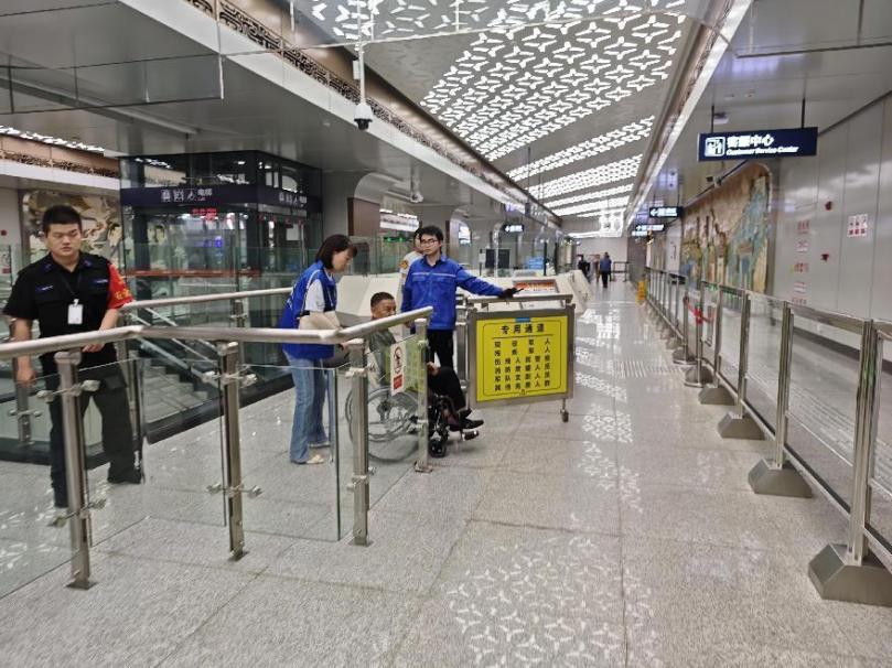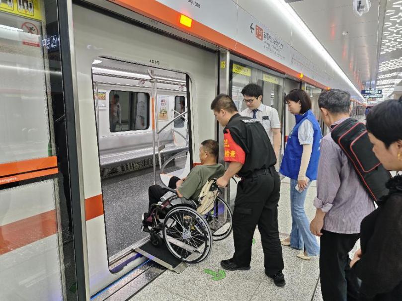 活动中,督导队从进站到乘车全程模拟残疾人出行流程。地铁站工作人员主动提供无障碍服务,协助轮椅使用者顺利进站乘车,并与终点站做好对接,确保全程无忧。现场体验显示,车站无障碍通道、电梯、连接桥、无障碍卫生间等硬件设施完善,工作人员服务细致暖心,充分体现了对特殊群体的人文关怀。