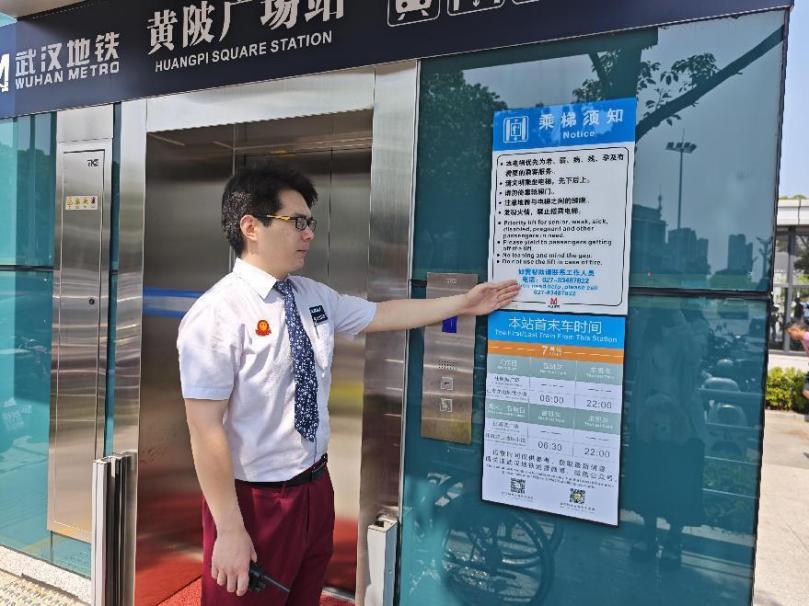 体验结束后,黄陂广场站站长带领督导队参观了站内外的无障碍设施,详细介绍了无障碍呼叫按钮、急救设备等功能。督导队向地铁站工作人员宣传《中华人民共和国无障碍环境保护法》。针对督导队提出的优化建议,站长表示将积极采纳并进一步优化服务,武汉地铁始终秉持“以人为本”理念,致力为特殊群体提供更安全、便捷、温暖的出行服务。