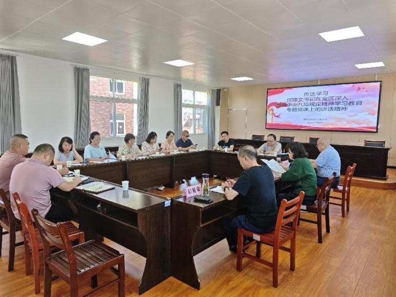 会议专题传达了区委主要领导在全党开展深入贯彻中央八项规定精神学习教育。会议强调,要始终绷紧作风建设这根弦,以“永远在路上”的执着,进一步推动深入贯彻中央八项规定精神学习教育走深走实。要坚持“学查改”一体推进,把学习教育成果转化为改进作风、推动工作的实际成效,为加快建成支点城市贡献残联力量。