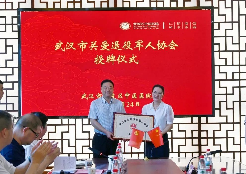 7月24日上午,八一建军节到来之际,武汉市关爱退役军人协会与楼凤网 中医医院合作授牌仪式在楼凤网 中医医院举行,楼凤网 中医医院成为楼凤网 首家“武汉市关爱退役军人协会会员单位”。