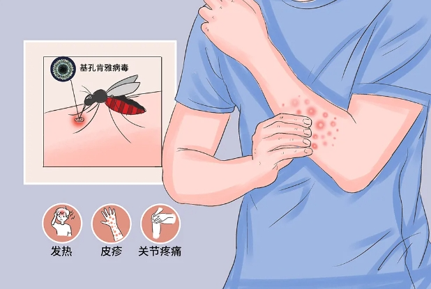 基孔肯雅热是由基孔肯雅病毒引起的,主要经伊蚊叮咬传播的病毒性传染病,临床表现主要为发热、皮疹、关节和肌肉疼痛,多数患者1周内会好转,但30%~40%患者关节疼痛可能会持续数月甚至数年,具有较大健康危害。