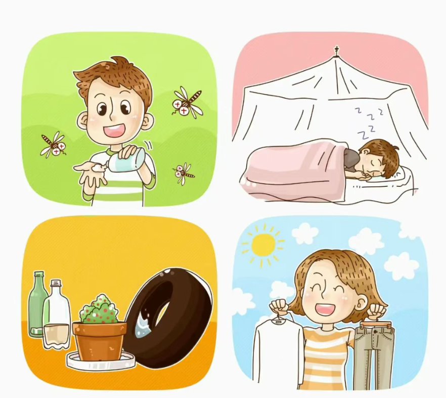 (一)个人防护。疫点周边或蚊虫活跃区域,居民应做好个人防护,出门穿着浅色长袖衣裤减少皮肤暴露,必要时使用驱蚊液、驱蚊贴等产品。室内可安装纱门纱窗,夜间睡眠时使用蚊帐。