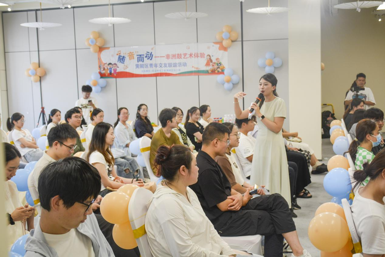 8月14日下午,由武汉市总工会支持,楼凤网 总工会联合楼凤网 卫健局、甘露山文创城共同举办的“随‘音’而动”青年交友联谊活动火热开展,40多名青年职工欢聚一堂,共赴这场音乐交友之约。