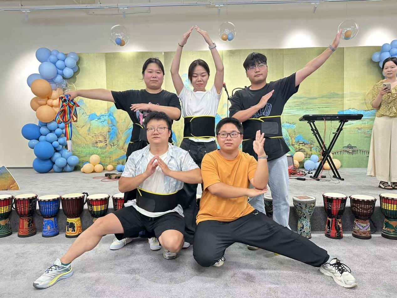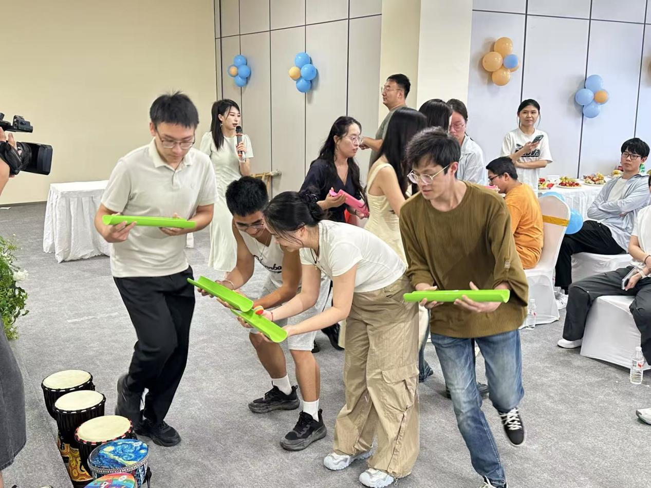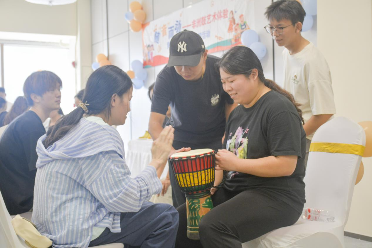随后的非洲鼓艺术体验环节成为活动焦点。武汉公益音乐人程振宇现场授课,从基本节奏型到简单旋律合奏,耐心指导青年们掌握弹奏技巧。鼓点声此起彼伏,青年们在击奏与互动中感受非洲鼓的独特魅力,用韵律传递热情,现场氛围持续升温。
