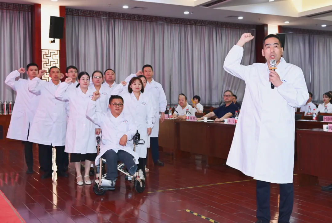 大会在区中医医院党委书记任正勇的主持下拉开帷幕。由时珍人才、骨伤二科主任刘铀宁领誓,医师代表肃然站立,全体医师集体重温《中国医师誓言》,铿锵誓言回荡会场,彰显了黄陂中医人守护人民健康的坚定信念。