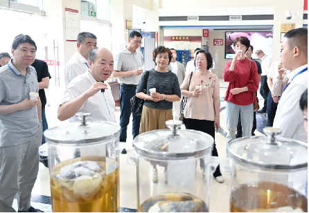 考察组首站抵达门诊大厅,通过参观中医药文化成品展示区、中药茶饮区及健康宣传区,听取文化传播举措介绍,现场品尝中药养生茶饮,重点了解医院中医药文化推广工作。对医院免费提供茶饮、兼具知识传播与健康服务的做法予以点赞。