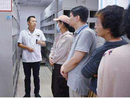 在中药房,考察组聚焦中药制剂类型、适宜人群及药材保障,听取饮片、膏方、散剂、丸剂等制剂介绍,仔细查看药材储存环境,询问采购渠道与质量管控措施,认可医院严格的质量把关体系,认为“优质地道药材是中医药疗效的基础”。