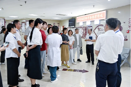 随后,考察组参观门诊中医非药物治疗中心与针灸康复科病房。在非药物治疗中心,艾灸、拔罐、推拿、穴位贴敷等传统疗法的临床应用,让考察人员直观感受中医药非药物治疗优势;在针灸康复科病房,考察组详细了解中风后遗症等疾病的中西医结合康复方案,予以肯定。