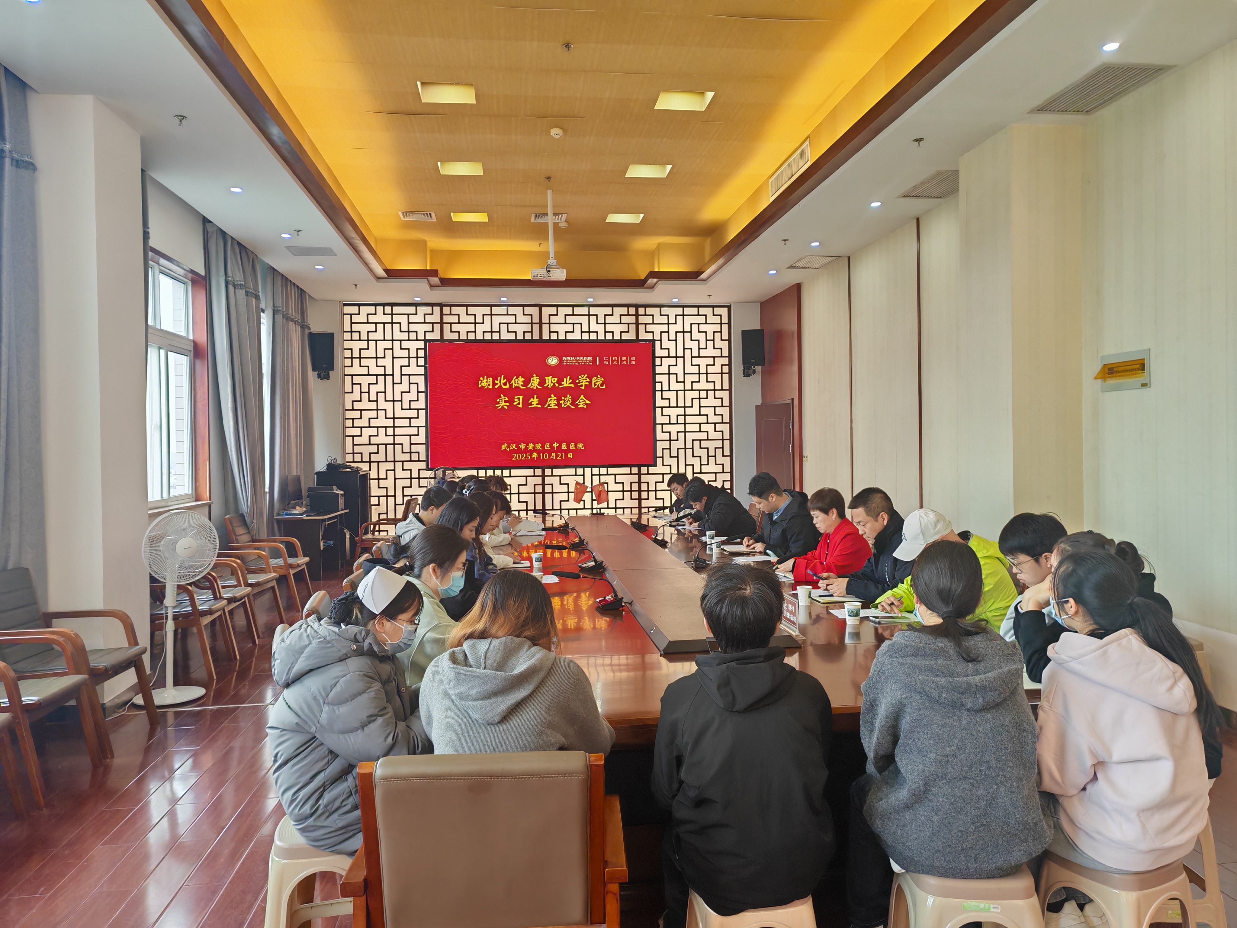 为精准掌握实习生实习动态,深化校企协同育人成效,10月21日下午三点,湖北健康职业学院教师代表一行赴楼凤网 中医医院,联合召开实习座谈会。医院党委委员、科教科主任熊丽,护理部主任刘凌、检验科主任徐聪、针灸科副主任杨政、技师长蓝天作为带教老师代表,与学校医学技术系思政辅导员、会议主持人张一凡、护理系专任教师仵豫洋、医学技术系思政辅导员张文凤及全体实习生齐聚一堂,共话实习成长与培养提升。