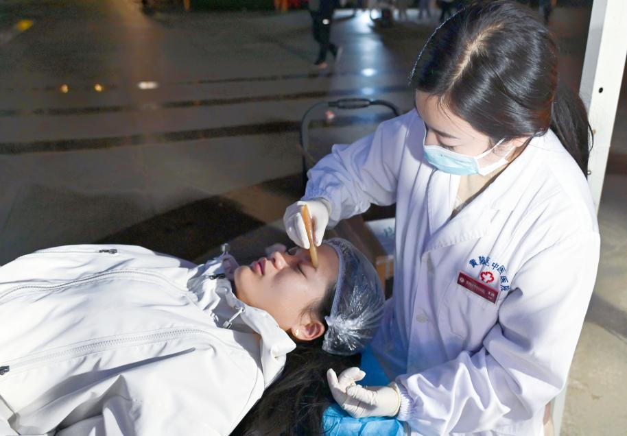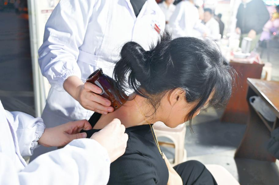 传统疗法区热闹非凡,成人拔罐、小儿推拿、艾灸等免费体验项目依次排开,还提供血压和血糖检测。上班族陈先生因肩周炎抬臂困难,针灸后惊喜感叹:“扎针后不疼了,中医治疗真快!”28岁上班族刘女士刮痧后说:“肩颈不僵了,呼吸都顺畅了。” 体验穴位敷贴的程女士点赞:“中医外治真方便,喉咙不燥了。”