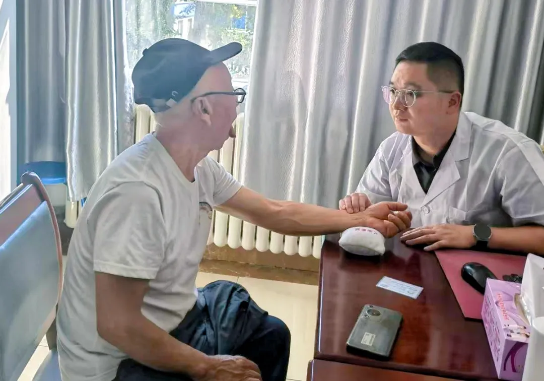 除了日常坐诊,黄超更主动走进辖区独居老人家中,将医疗服务送到群众身边。在乌图布拉格镇的陈奶奶家中,他俯身检查老人腿部水肿情况,并半蹲在地,手把手教她按摩手法:“从下往上轻轻揉,每天五分钟,有助于消肿。”他耐心讲解力度与频率,直到老人熟练模仿,才鼓励道:“做得对,有时候这比吃药还管用。”