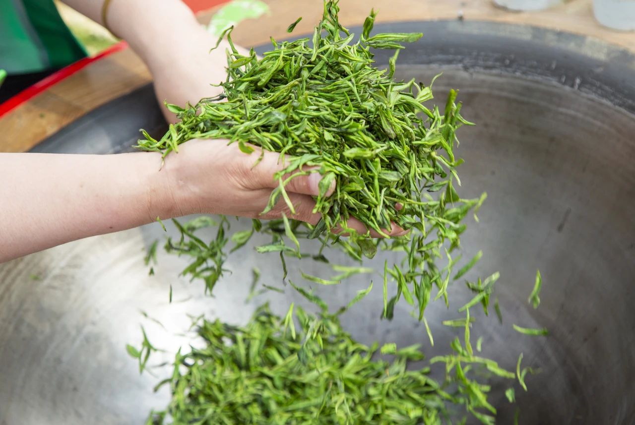 经过一个半小时的炒制,匠心独运的手工春茶成型。