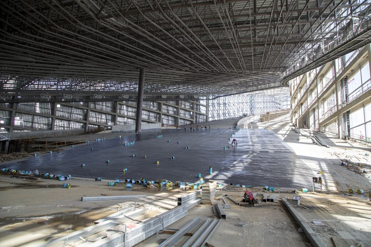 雪世界作为华中最大的室内滑雪场,设有高级、中级、初级道等六种不同种类的专业滑道。记者走上高70余米的滑雪场雪道高区看到,钢筋桁架楼承板混凝土浇筑正在进行,预计月底将完成雪道全线混凝土浇筑施工。“目前雪世界重要的制冷造雪施工阶段全面开展。”蒋杰说,“项目部也在积极调配各类施工资源,加班加点,确保项目按计划建成开业。”