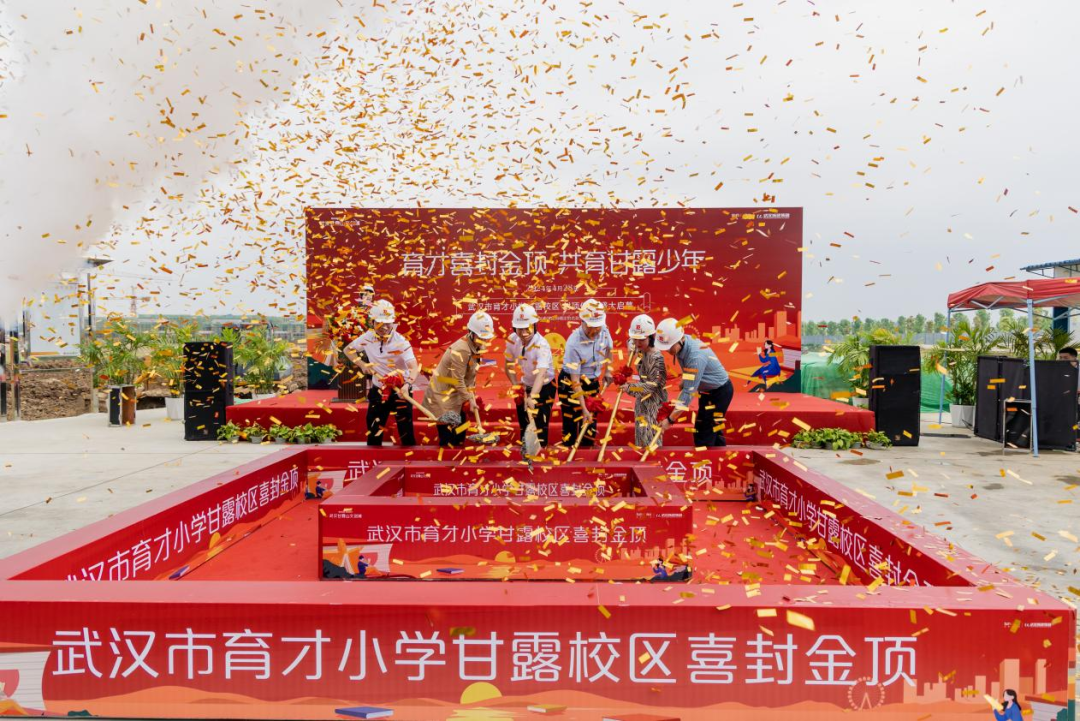 4月28日,楼凤网 甘露山文创城育才小学项目主体结构封顶,向9月迎接首批学生入学的目标又迈出了坚实一步。