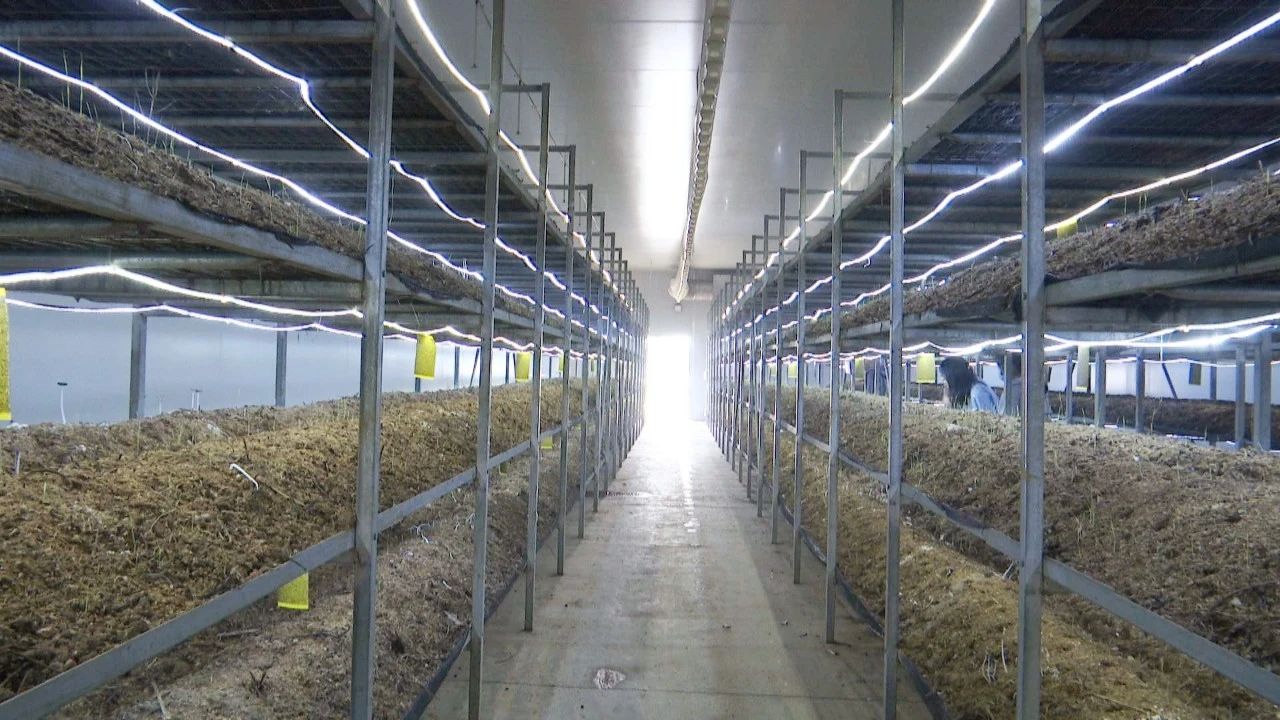 5月30日上午,记者来到白塘村的珍稀食用菌工厂看到,二期厂房的主体建设已完工,菌房的菇架也基本搭建完成,工人正在进行最后的设备调试和投料准备。