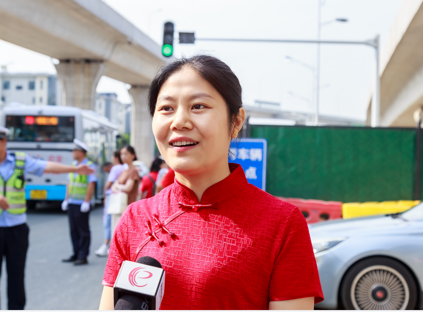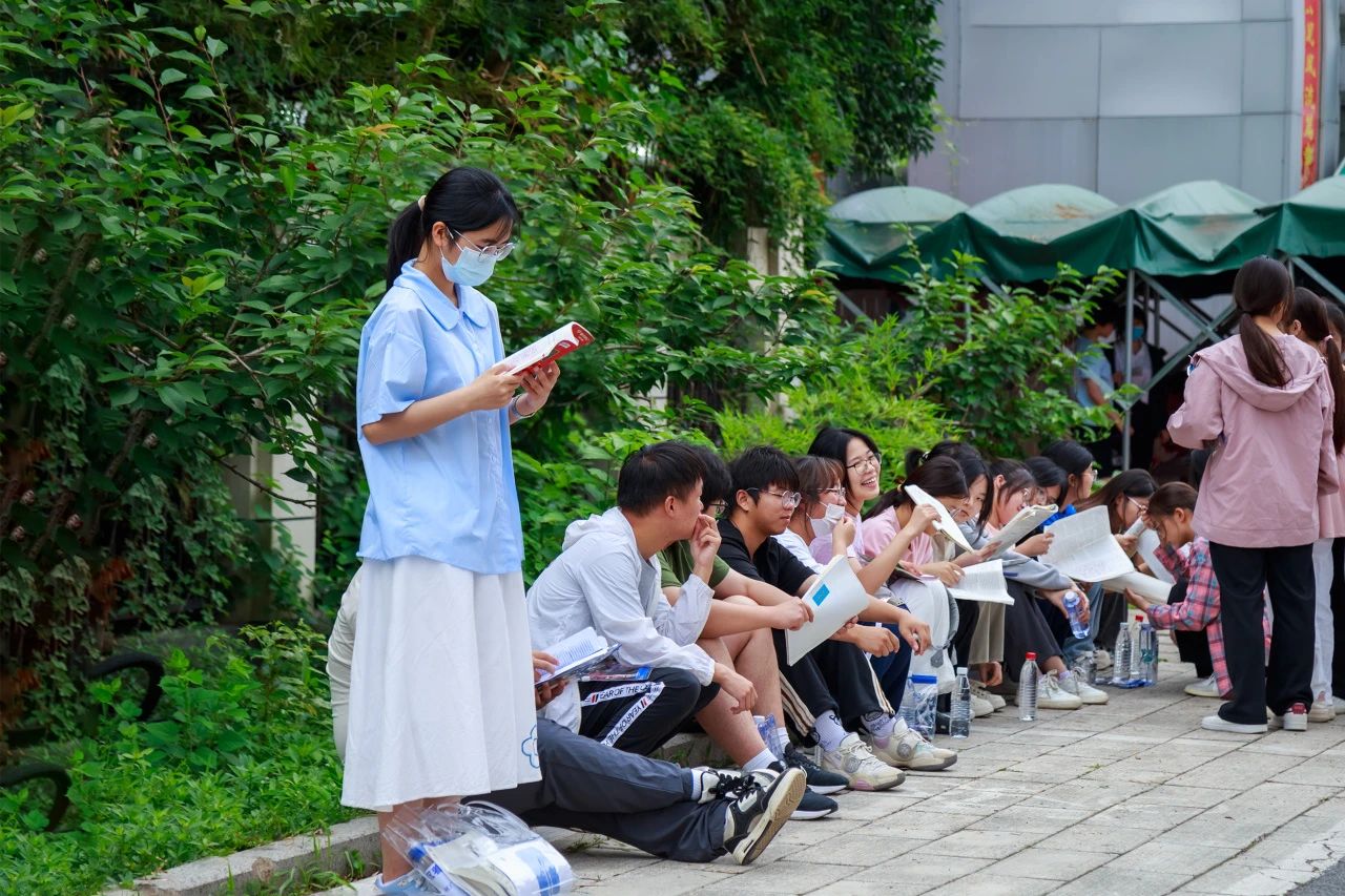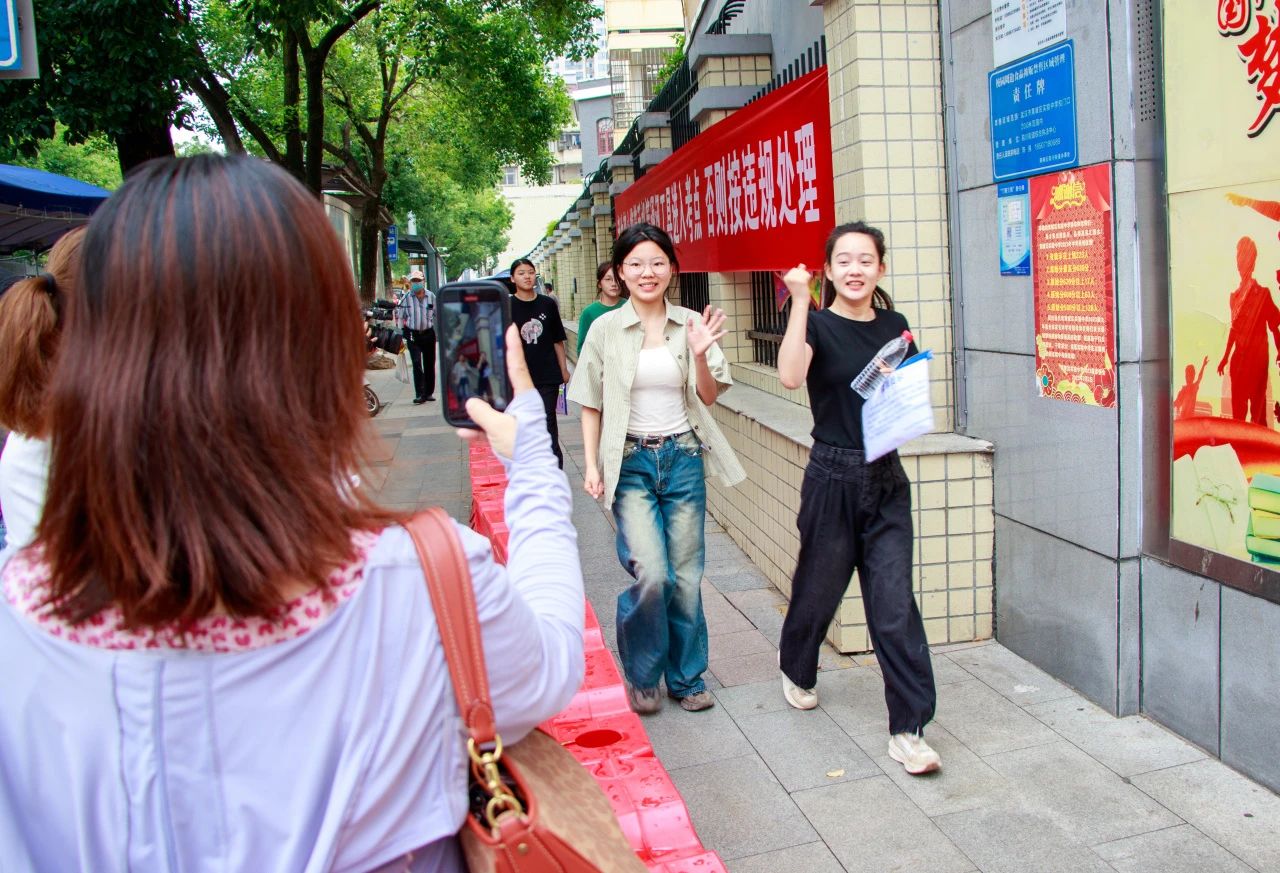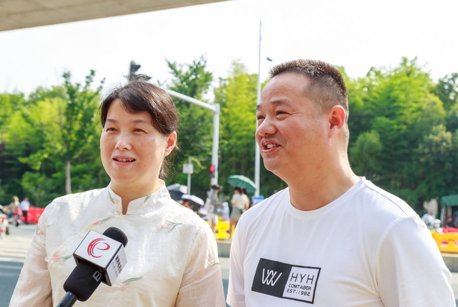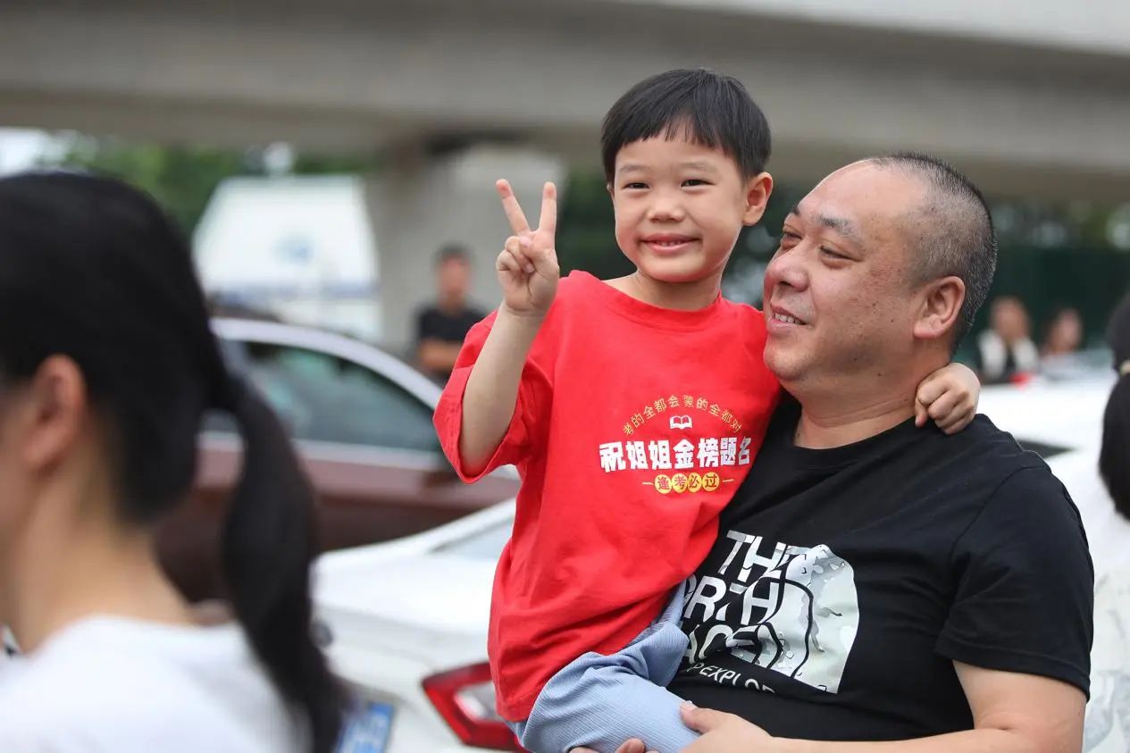 区第七中学考点外专门设置了各校集合点,尹莉和陈军夫妇正在此耐心等待,想第一时间听到孩子的好消息。一家人今天还特意都穿上了定制的高考亲子套装。“陪孩子来考试很激动也很忐忑,希望所有学子都能发挥好,金榜题名,前程似锦!”