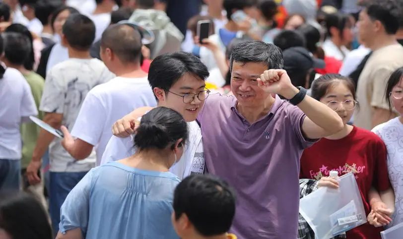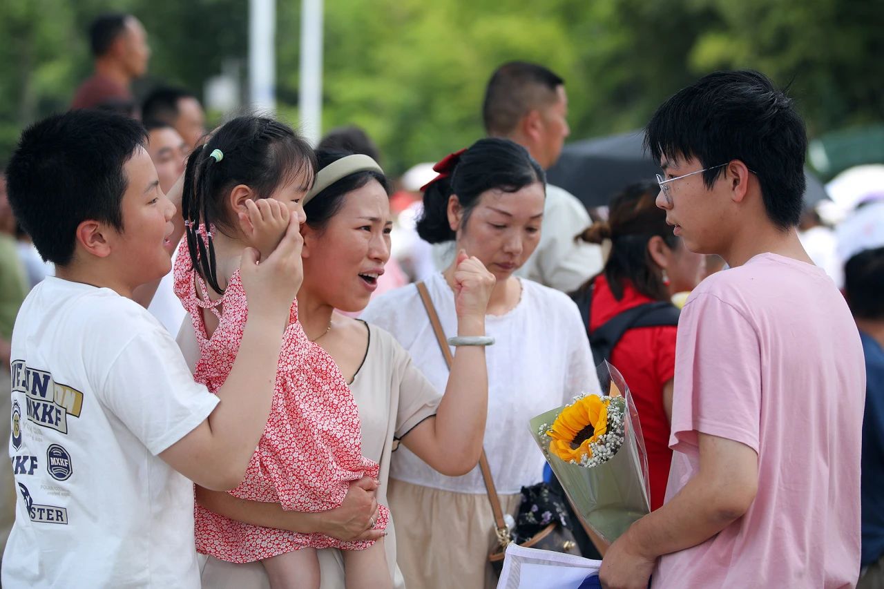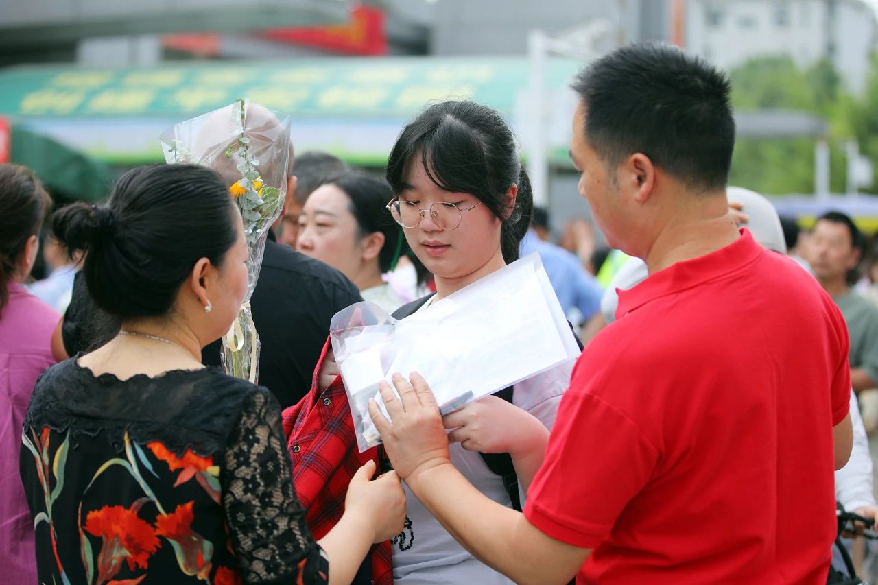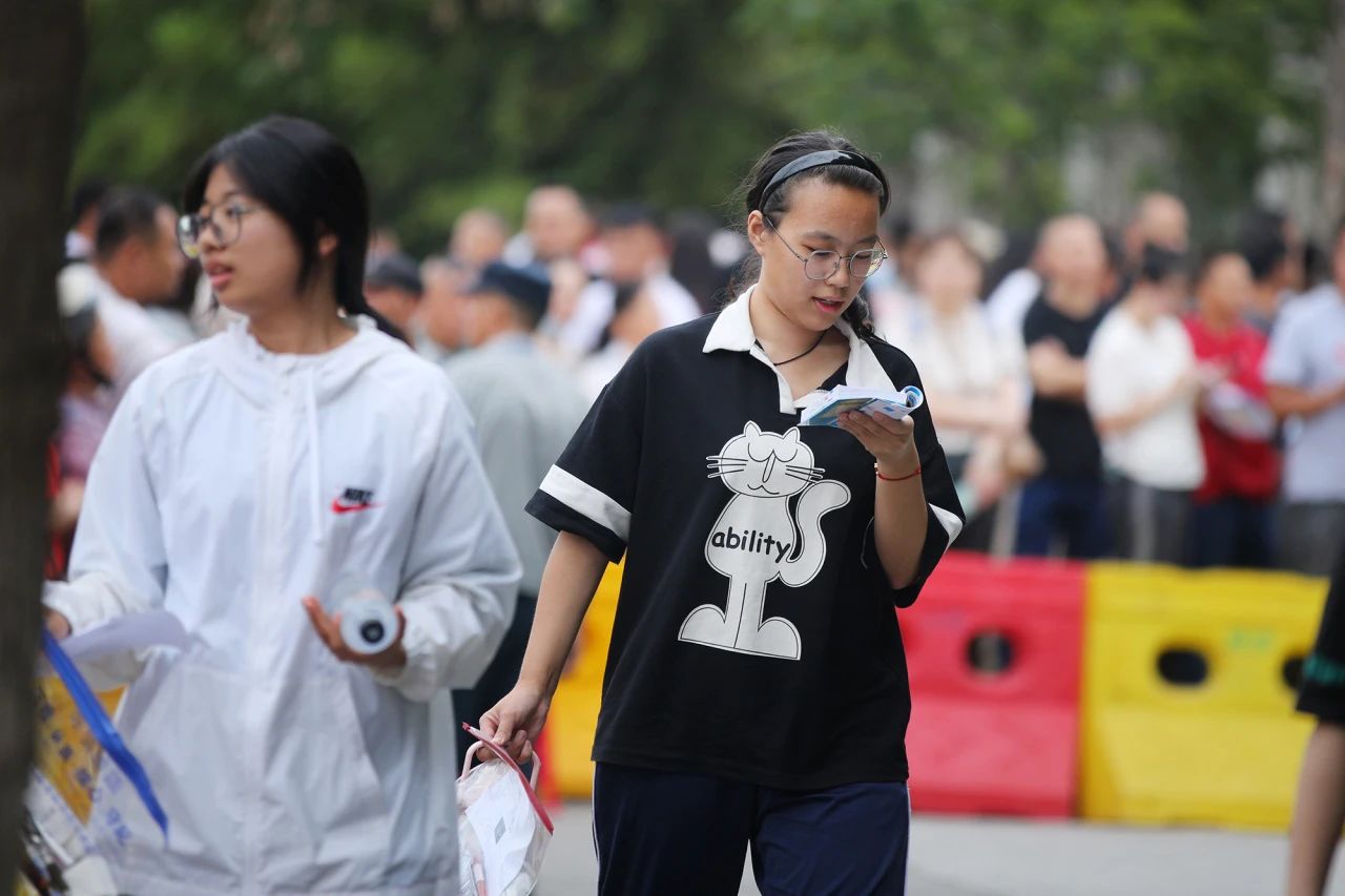 区第七中学考点外专门设置了各校集合点,尹莉和陈军夫妇正在此耐心等待,想第一时间听到孩子的好消息。一家人今天还特意都穿上了定制的高考亲子套装。“陪孩子来考试很激动也很忐忑,希望所有学子都能发挥好,金榜题名,前程似锦!”