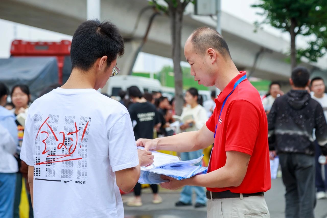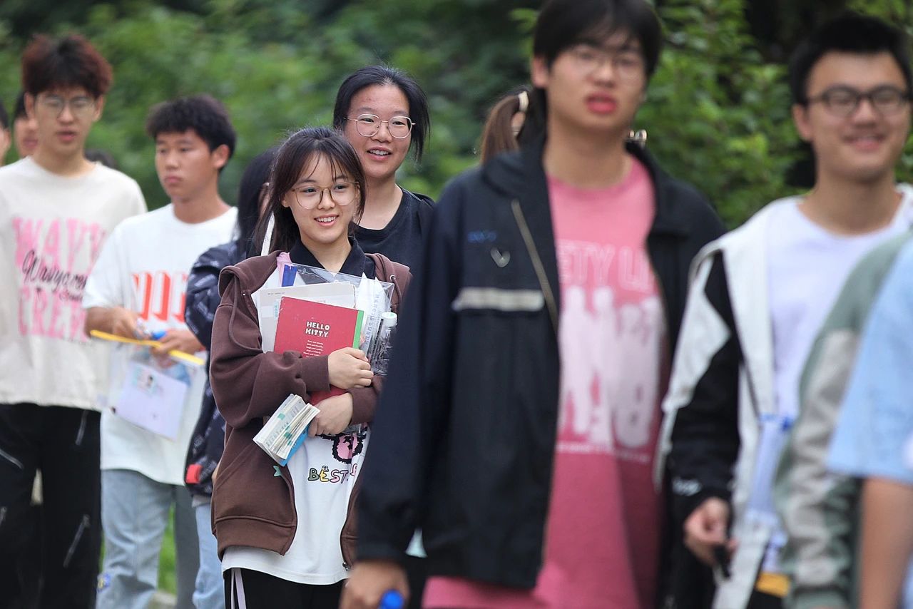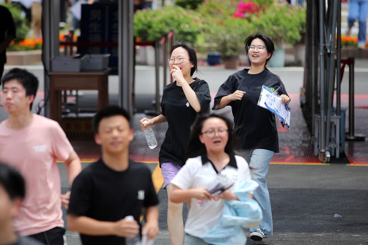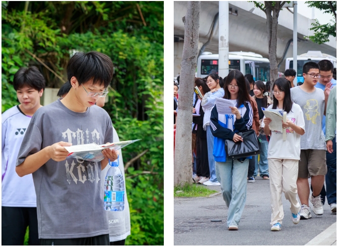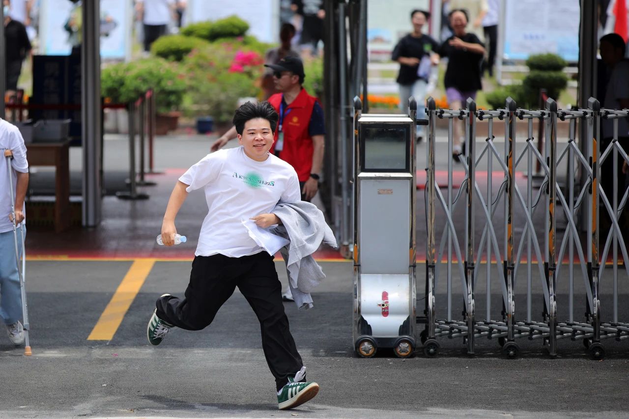 区第七中学考点外专门设置了各校集合点,尹莉和陈军夫妇正在此耐心等待,想第一时间听到孩子的好消息。一家人今天还特意都穿上了定制的高考亲子套装。“陪孩子来考试很激动也很忐忑,希望所有学子都能发挥好,金榜题名,前程似锦!”