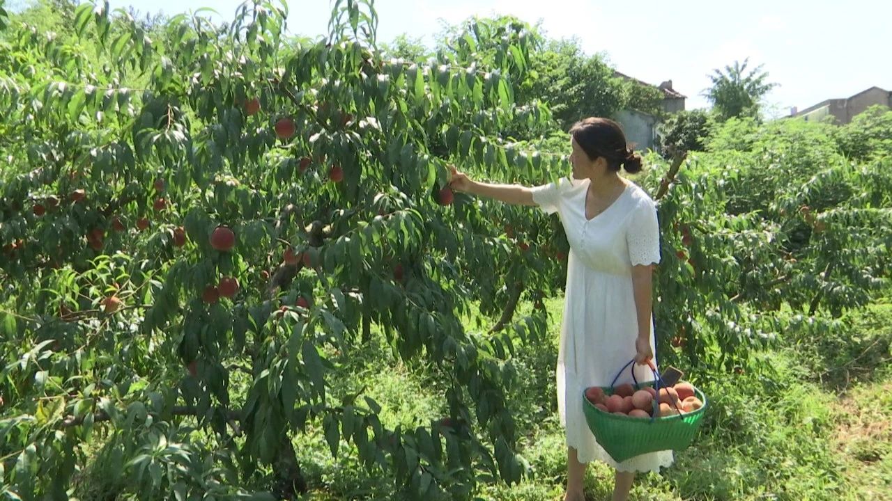 香甜诱人的桃子吸引了一些游客前来,“听说这里桃子熟了,就带几个朋友过来体验一下,尝试了一下味道很不错,很甜。”方明和朋友一起穿梭于桃林之间挑选游玩,一边感受田园风光,一边享受采摘乐趣,不一会儿就满载而归。