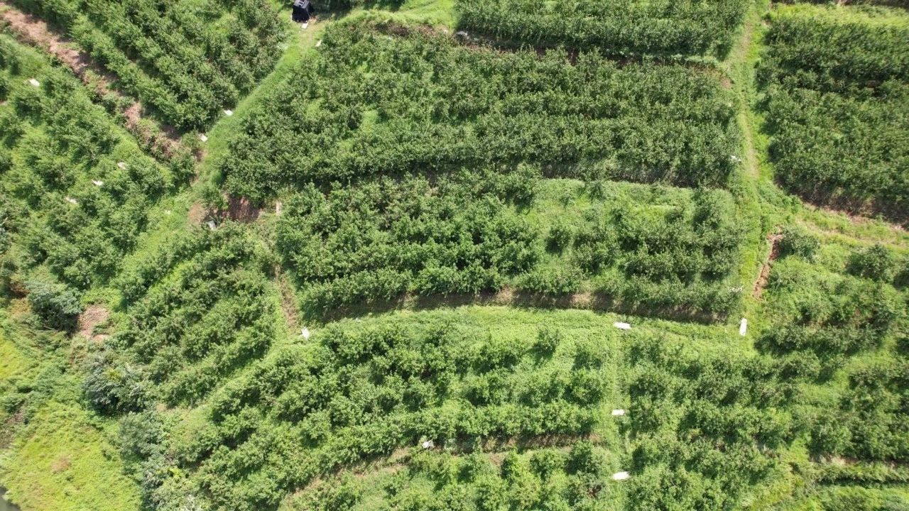 走进农场,阵阵果香扑鼻而来,茂密的果树上挂满了红彤彤的果子,种植户柳翠凤正在查看果子的成熟度。