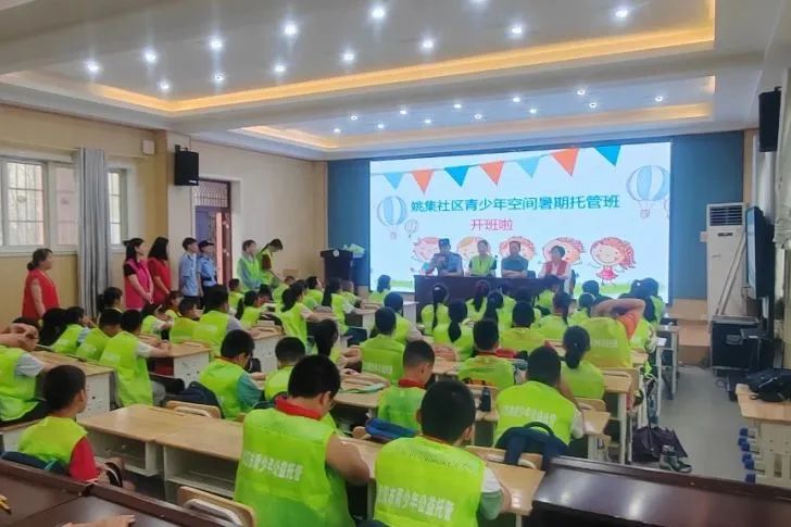 此次暑期托管班开设有安全教育、法律普及、体育锻炼、艺术手工等丰富多彩的课程,目前托管班已招收辖区内小学生54人。10余名大学生志愿者与工作人员共同协作,丰富孩子假期生活。