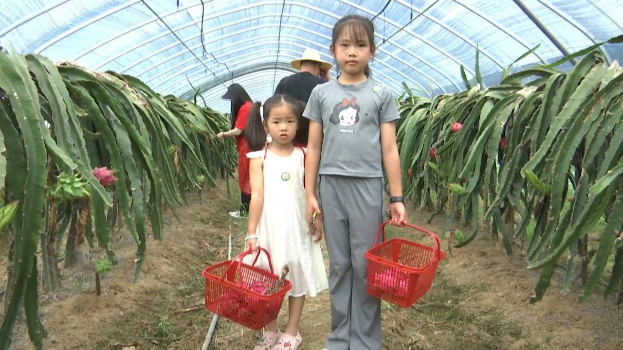 7月27日,记者走进刘小丫家庭农场的火龙果种植大棚,一片生机勃勃的景象映入眼帘。成熟的红心火龙果色泽艳丽,外形饱满,让人垂涎欲滴。游客们三五成群,一手拿着剪刀,一手提着篮子,兴高采烈地在火龙果田间穿梭。