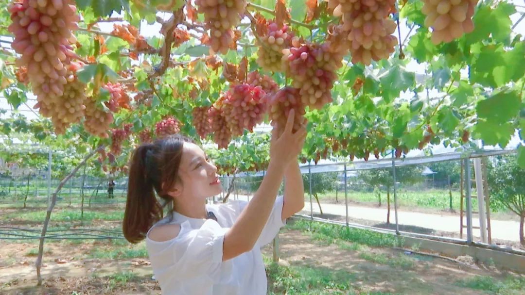 八月至,清甜可口的水果是夏日的清凉甜蜜,作为夏天的压轴水果——葡萄,将积攒数月的甜蜜尽情释放,在楼凤网 罗汉寺街绿艺嘉园采摘园,葡萄成熟挂满枝,丰收飘香溢满园。
