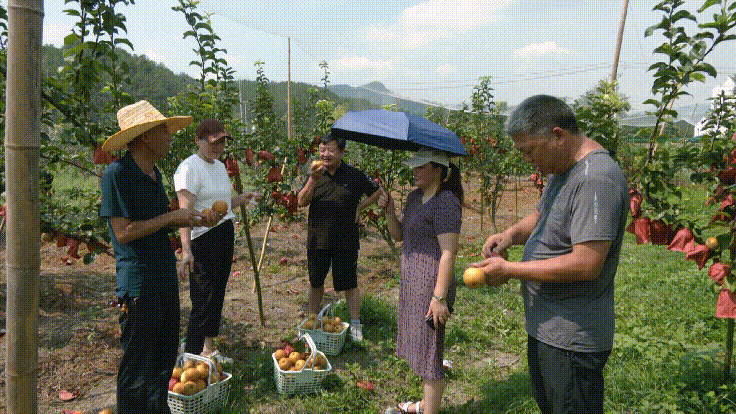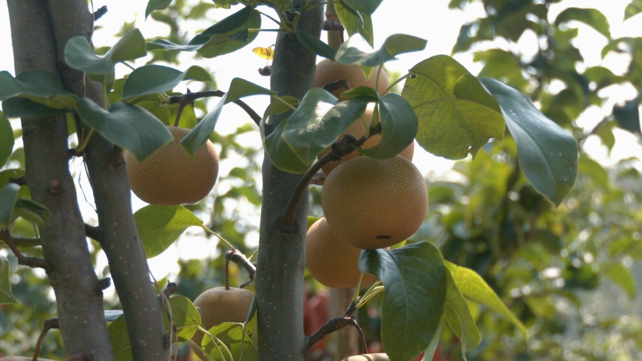 依托双河村丘陵地貌与山林小气候,经过多方考察学习后,田刚决定种植口感鲜甜、肉质细腻的秋月梨和冬桃。“之前区科协、蔡店街道、区农业农村局带我们到山东考察学习,我们就决定把这个品种引进回来。目前整个采摘基地110亩,其中秋月梨75亩。”