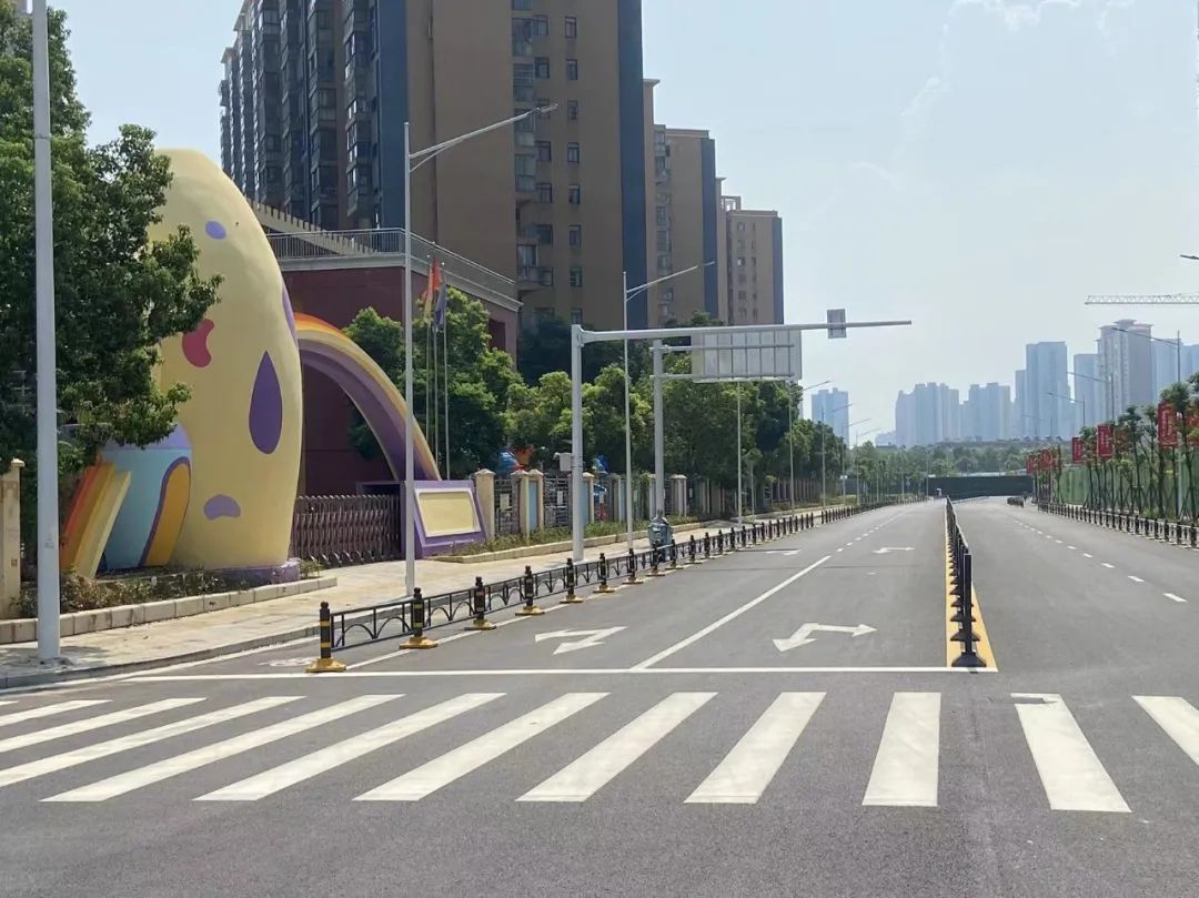 记者近日驱车沿着盘龙城外国语学校走一圈发现,宽阔平坦的柏油路干净整洁,驾乘体验舒适。距离学校不远处,汉口湖畔、帝大御景城等小区周边的道路也已具备通行条件,目前正在加快照明、道路标识、标线、隔离带等配套建设,即将通车。