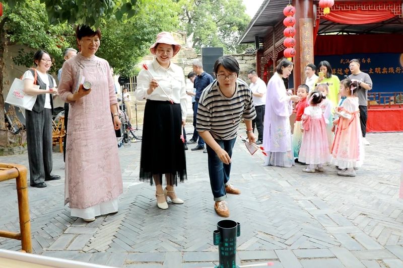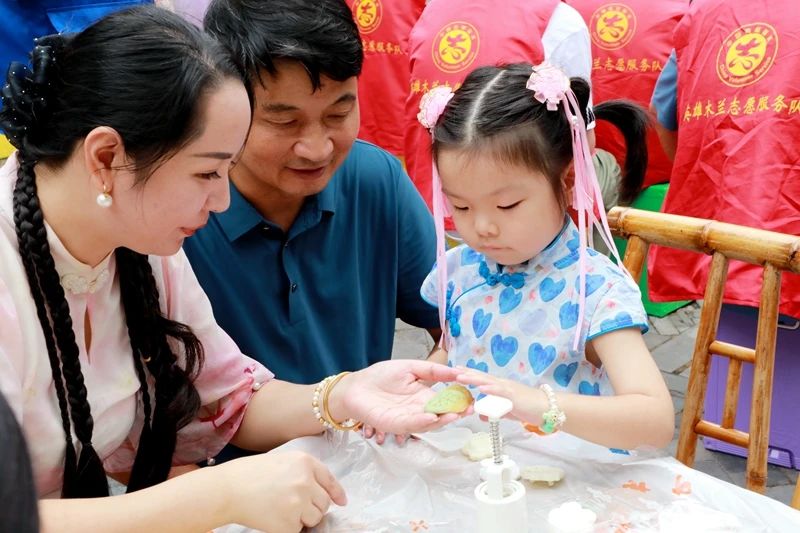 活动现场,文明实践“专列”的几节文明车厢颇为瞩目。“中秋百问”“趣味猜灯谜”“文明套圈”车厢里,各式灯谜、中秋传统文化、文明知识被巧妙融进游戏中,打破了传统灌输性宣讲模式,让大家在竞答里激起学习兴趣;在“手工DIY”车厢,颇具个性的冰皮月饼制作十分受欢迎,家长和孩子挽起袖子齐上阵,用“指尖技艺”打包亲情,感受手作别具匠心的“慢时尚”;在透着浓浓文化底蕴的“非遗传承”车厢内,孩子们在糖画艺人的指导下动手画糖人,品尝美食的同时,感受到了千年传承的“烟火气”;在“趣味投壶”“书画展示”车厢,热火朝天的互动场景更增添了几分节日氛围。榜样们和村民、游客玩在一起,其乐融融。