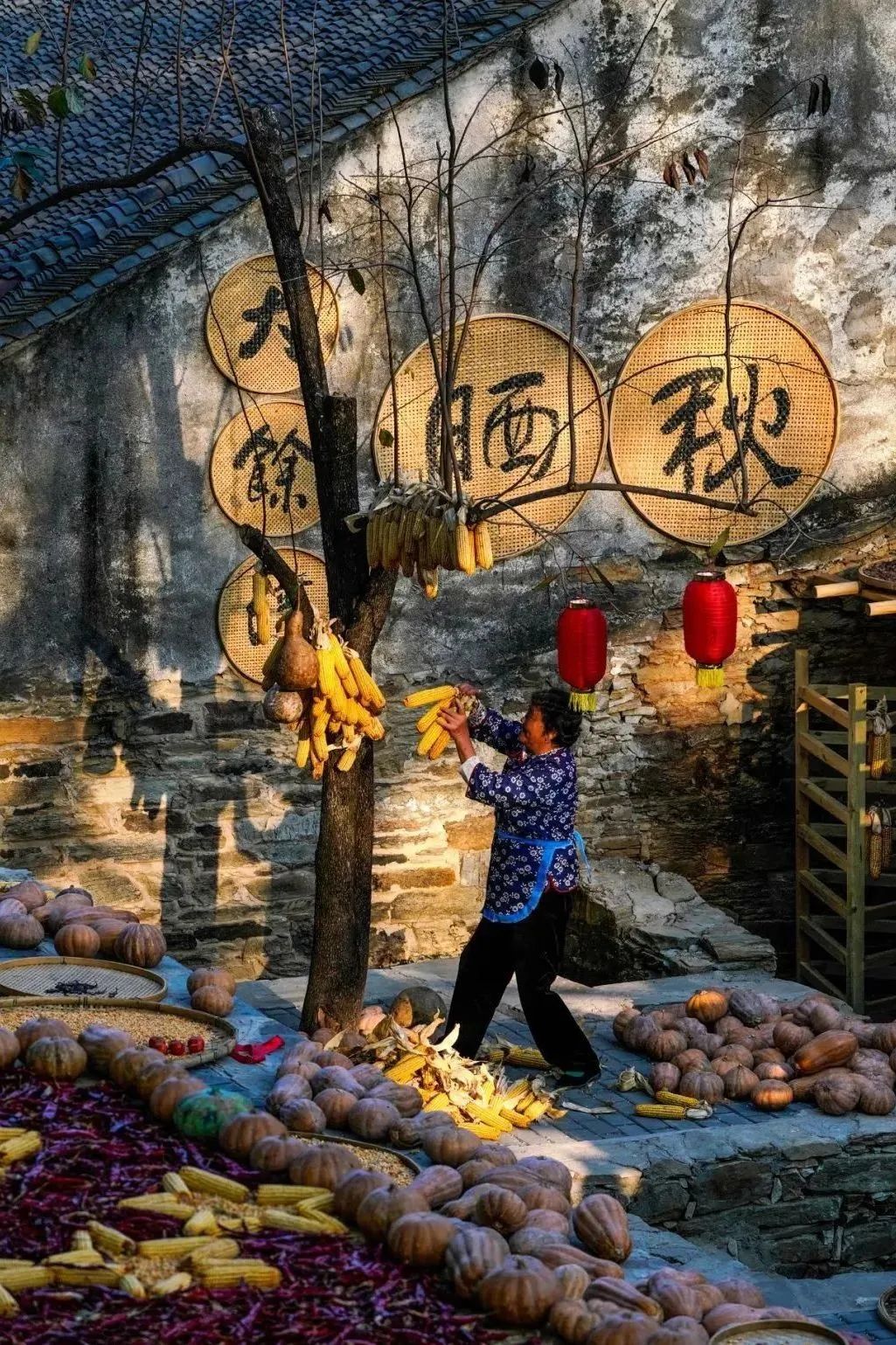大余湾第二届晒秋节也同步举行,通过晒秋活动,创意展示古村落的农耕文化和乡愁风情。此次晒秋节以“庆丰收、乐丰收、享丰收”为主题,不仅传承了古老的晒秋传统,还融入了一系列民俗文化演艺活动和文创、乡创、新国潮等创新元素,市民可以在这里了解农耕文化、农耕工具的使用和农耕生活的艰辛,同时也可以亲身体验乡村丰收的乐趣。
