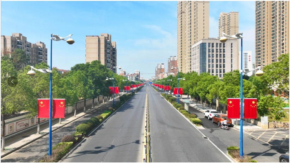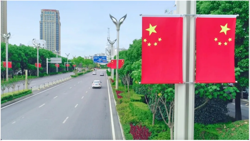 一抹抹“中国红”街头迎风招展,在行道树的映衬下显得分外耀眼。“国旗挂起来,节日氛围就拉满了,更深深感受到了祖国的繁荣昌盛和生活的幸福美好。”看着满目的“中国红”,市民陈女士心潮澎湃。