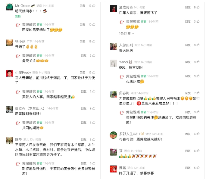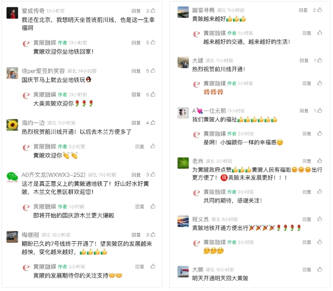 网友丁丹留言说,通车后,去一趟黄陂广场,不用先坐公交车到汉口火车站排队转292路了,计划国庆期间专门陪同长辈们乘着地铁去黄陂广场周边逛逛。
