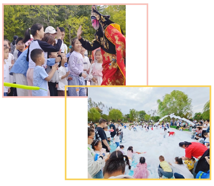 据景区工作人员介绍,除了各类游玩设施外,景区在国庆期间还推出了变脸、野趣捉螃蟹大赛、卡通主题巡游等特色活动,内容覆盖各个年龄段,男女老少均可体验游玩,尤其适合亲子家庭。国庆期间,景区科学分析研判客流、车流等信息,及时为游客提供各类服务,确保游客玩得安全,玩得开心。