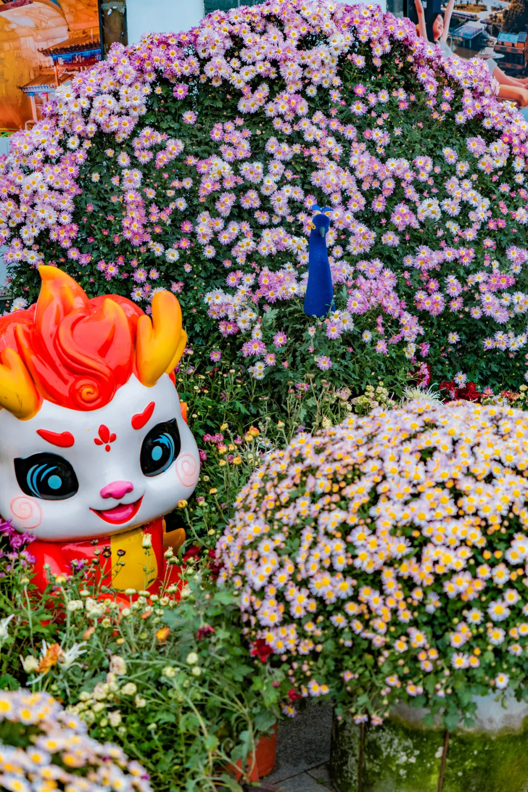 木兰不夜城的菊花展览与景区特有的古典风情融合,搭配清溪、冷雾等装置造景,共同打造出一个充满唯美梦幻气息的花之都。