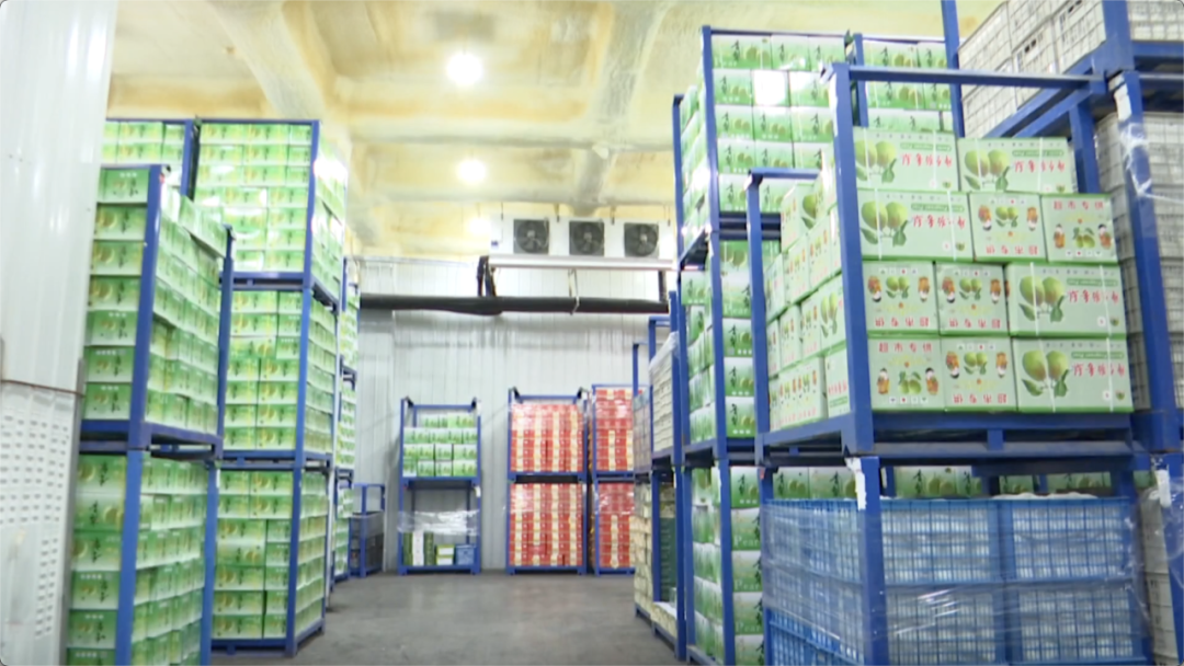 鑫葡冷链冷库主管刘高建说:“每年的12月份就进入了我们冷链的配送高峰期,果子在冷库里处于恒温的环境,我们调整温度、湿度、通风的参数条件,延长水果的保鲜期,为春节市场做准备。”
