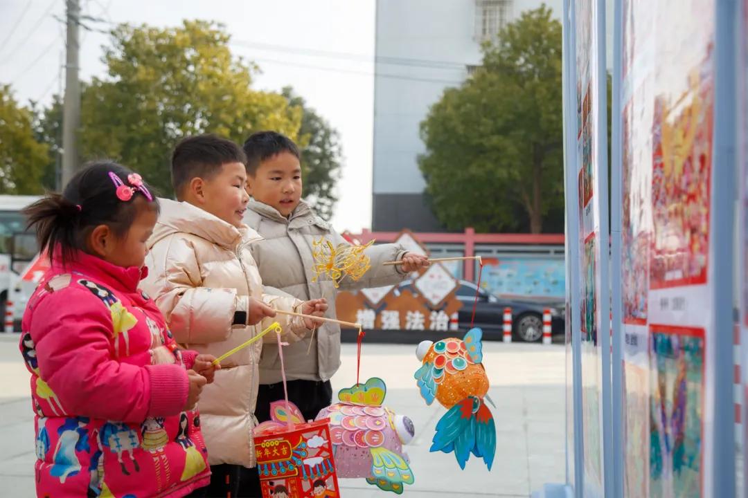 “新生活 新风尚 新年画”——优秀新年画作品展板前人头攒动,欣喜温暖的色彩氛围吸引不少居民驻足观看。
