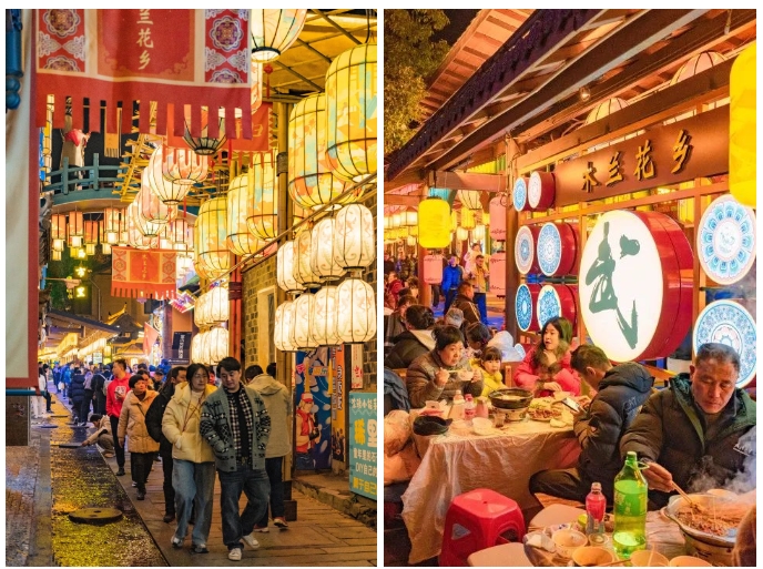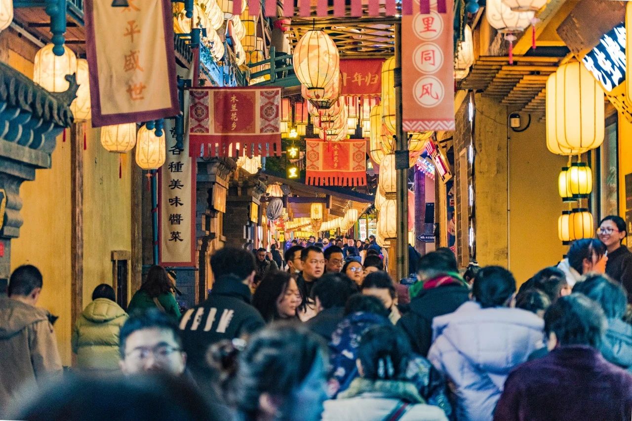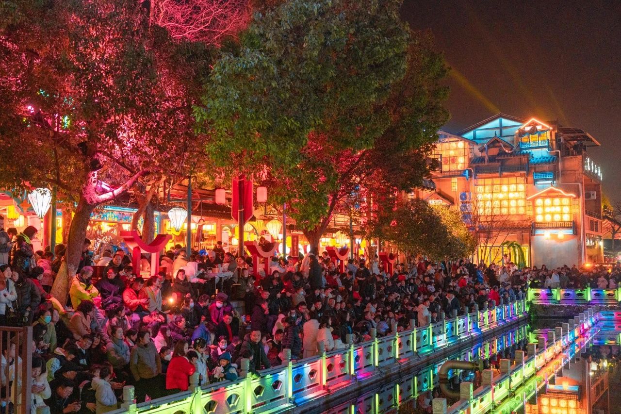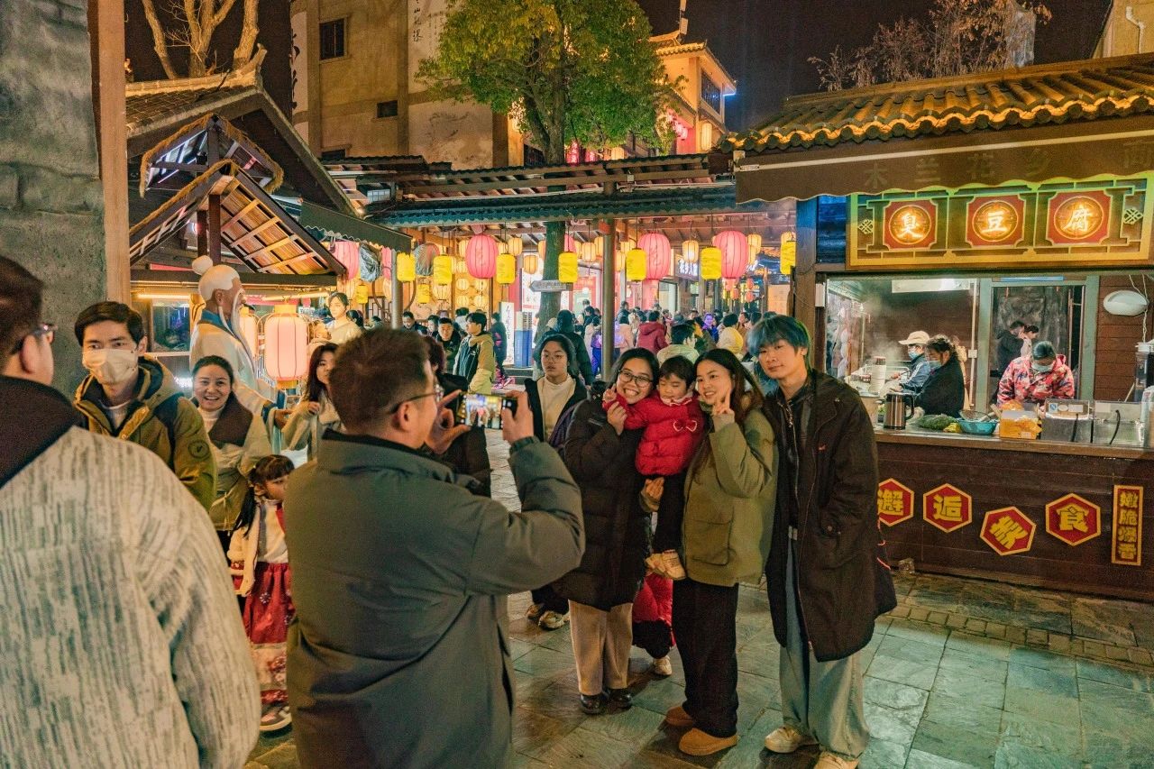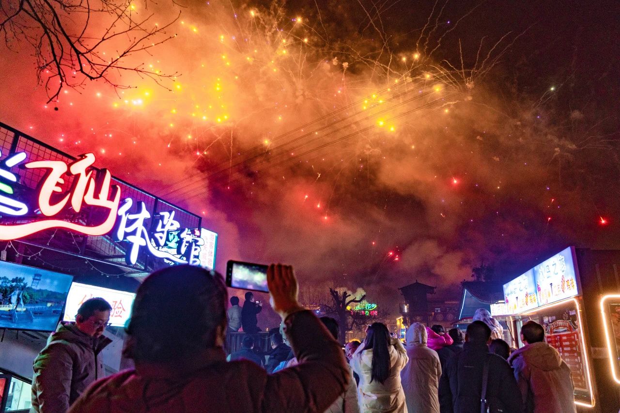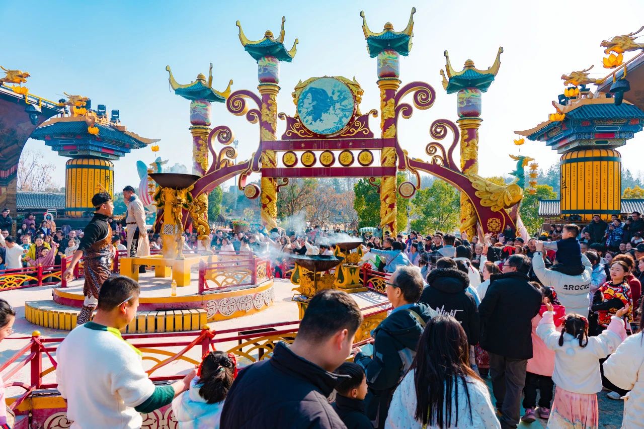 为增添节日氛围,景区还精心策划了一系列丰富多彩的活动。从沉浸式演艺街区《楚地长歌》,到年味集市、巡游、电音节、七彩祥云烟花秀都吸引了大量游客参与,景区异常火爆。