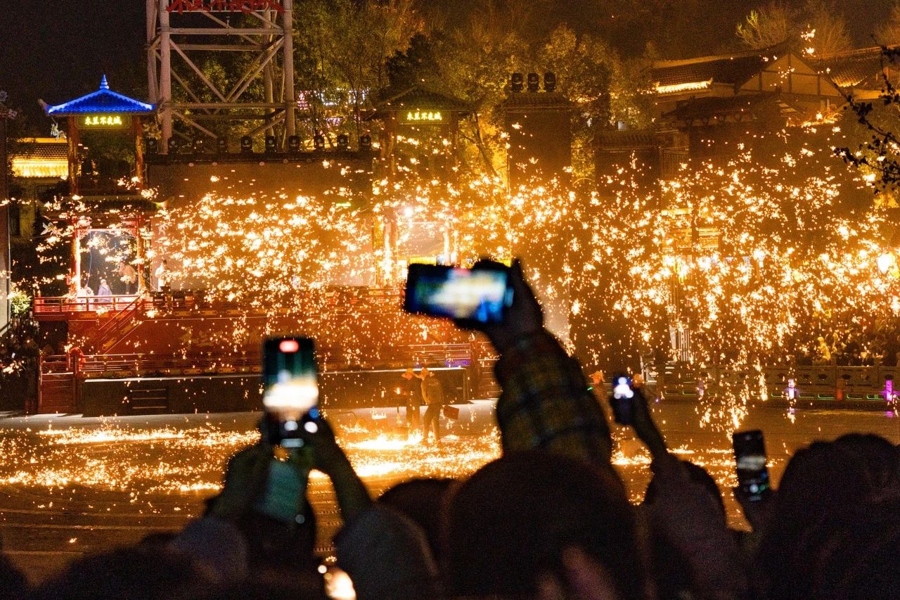 今年的正月初一,何展洋一家选择到景区度过一个别样的新年。走进不夜城,映入眼帘的是如梦如幻的灯海。一盏盏造型各异、绚丽多彩的花灯将景区装点得流光溢彩。在东、西市街区,唱戏曲、吐烈火、打铁花等特色演艺轮番上演,还有各种地方美食、网红小吃令人垂涎欲滴。
