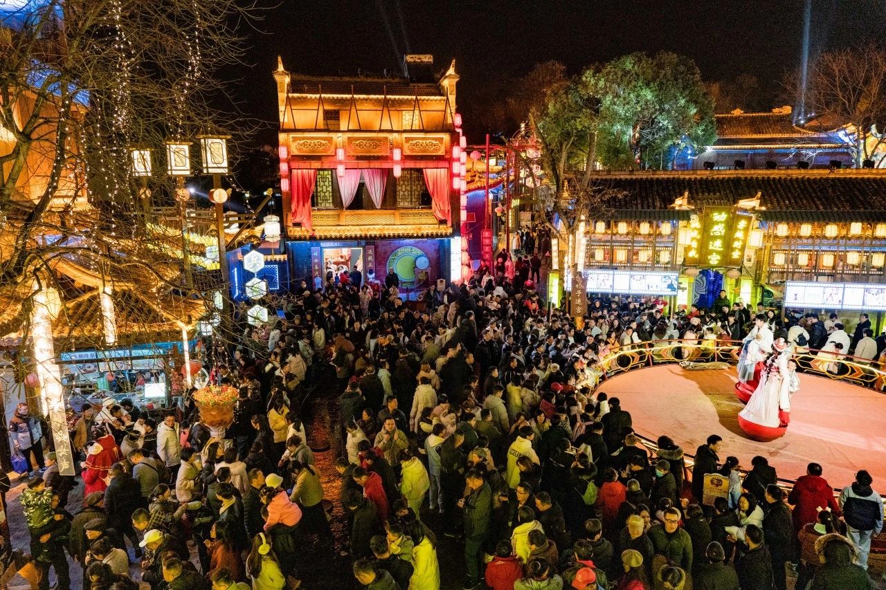 “仅除夕和大年初一这两天,景区游客量就已经突破5万人,预计今年春节期间,游客量可达25万人,同比提高25%。”木兰不夜城旅游度假区执行总经理王亮介绍。